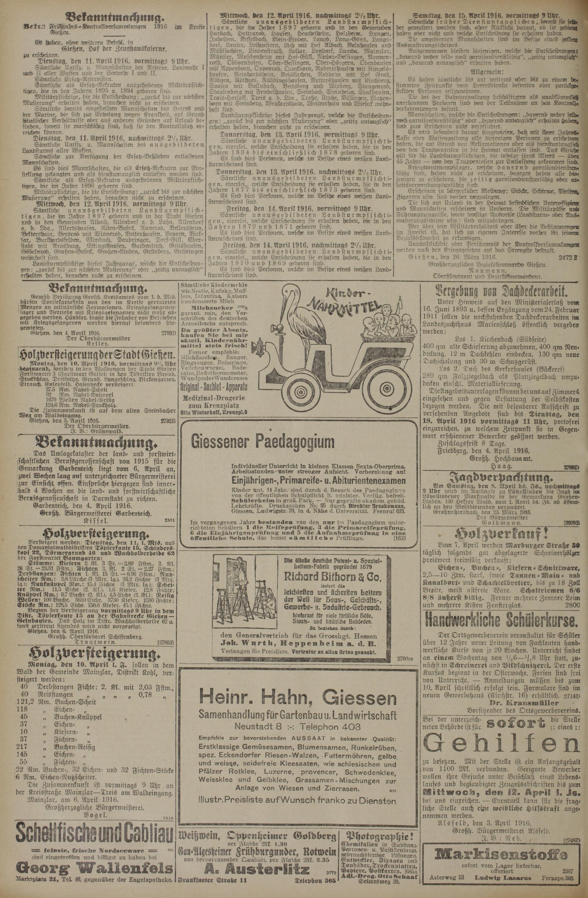 Die Zusammenkunft ist vormittags 9 Uhr an der Kreisstraße Mainzlar—Treis am Waldeingang. Mainzlar, am- 6. April 1916.