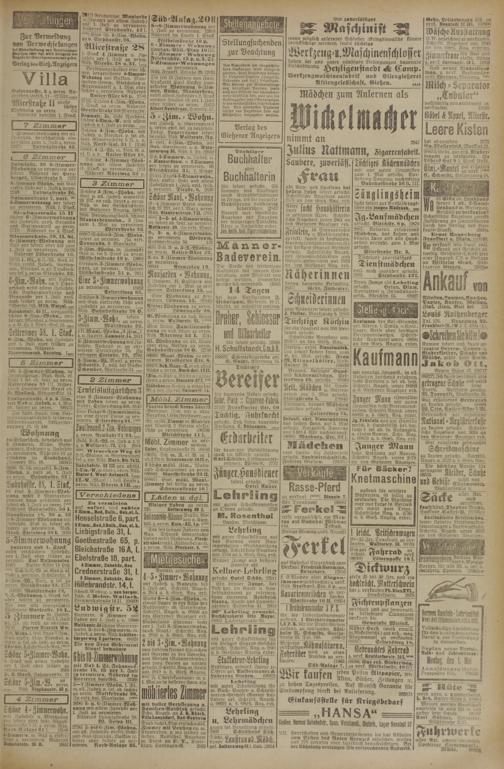 im Erdgeschoß, bestehend aus 5 Zimmern, Küche, Badezimmer, Kabinett u. Zubehör zu vermieten. Näheres ist zu erfahren im Stadthaus, Zimmer Nr. 16. 2034Z