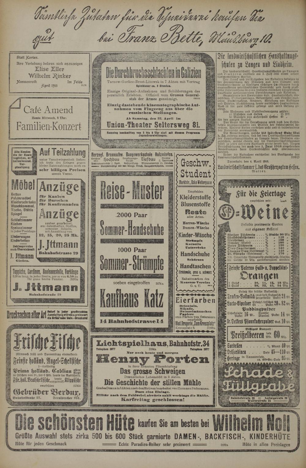 Die landwirtschaftl. Haushaltungsschulen zu Langen und Lindhet m eröffnen am 3. Juli 1916 einen neuen fünfmonatlichen Kursus.
