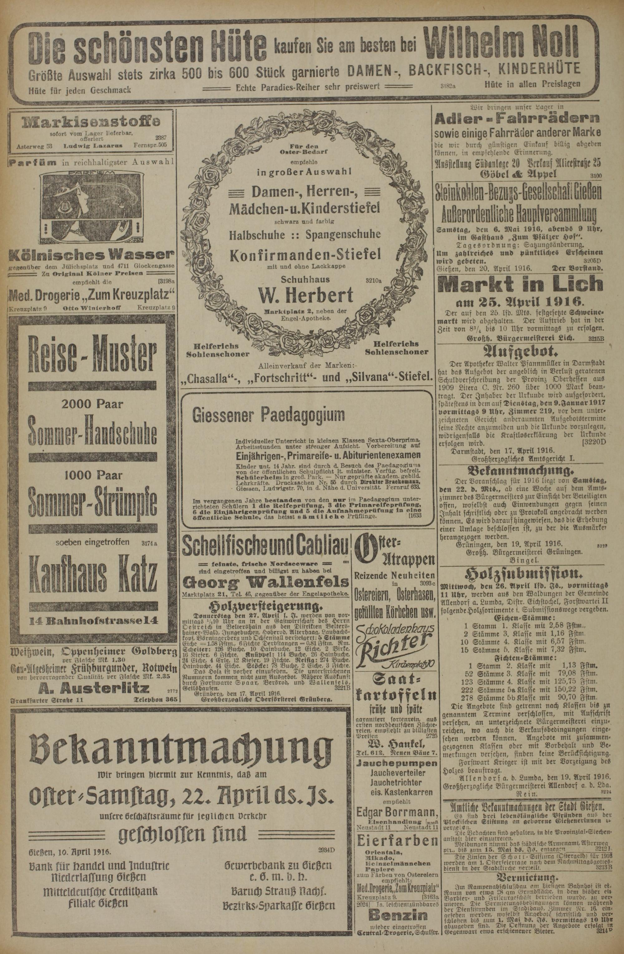 A l l e n d o r f a. d. Lumda, den 19. April 1916. Großherzogliche Bürgermeisterei Allendors a. d. Lda. Rein.
