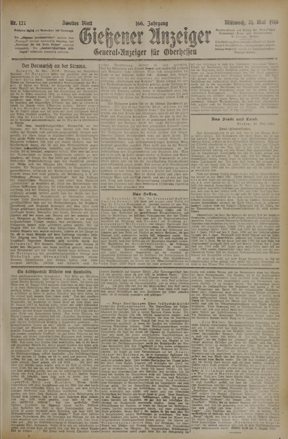 Gießen, 31. Mai 1916. Tüiri-Himmelfahrt.
