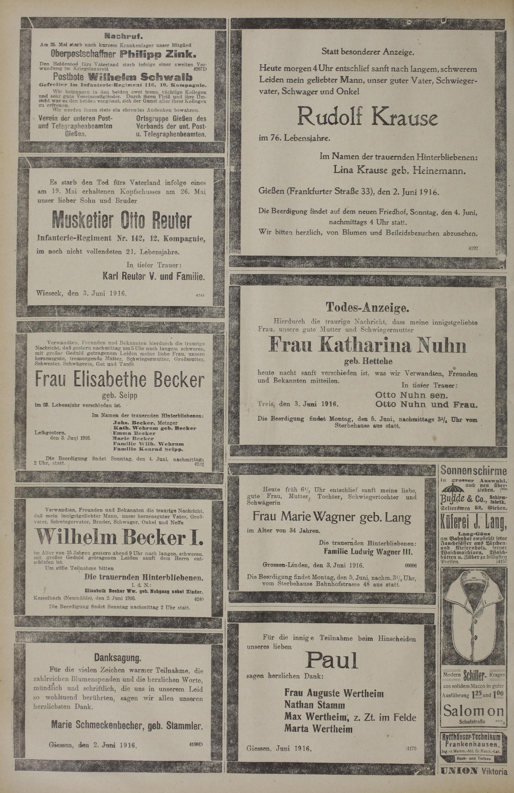 Giessen, den 2. Juni 1916.