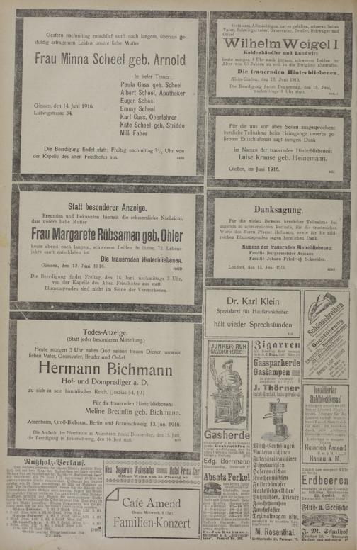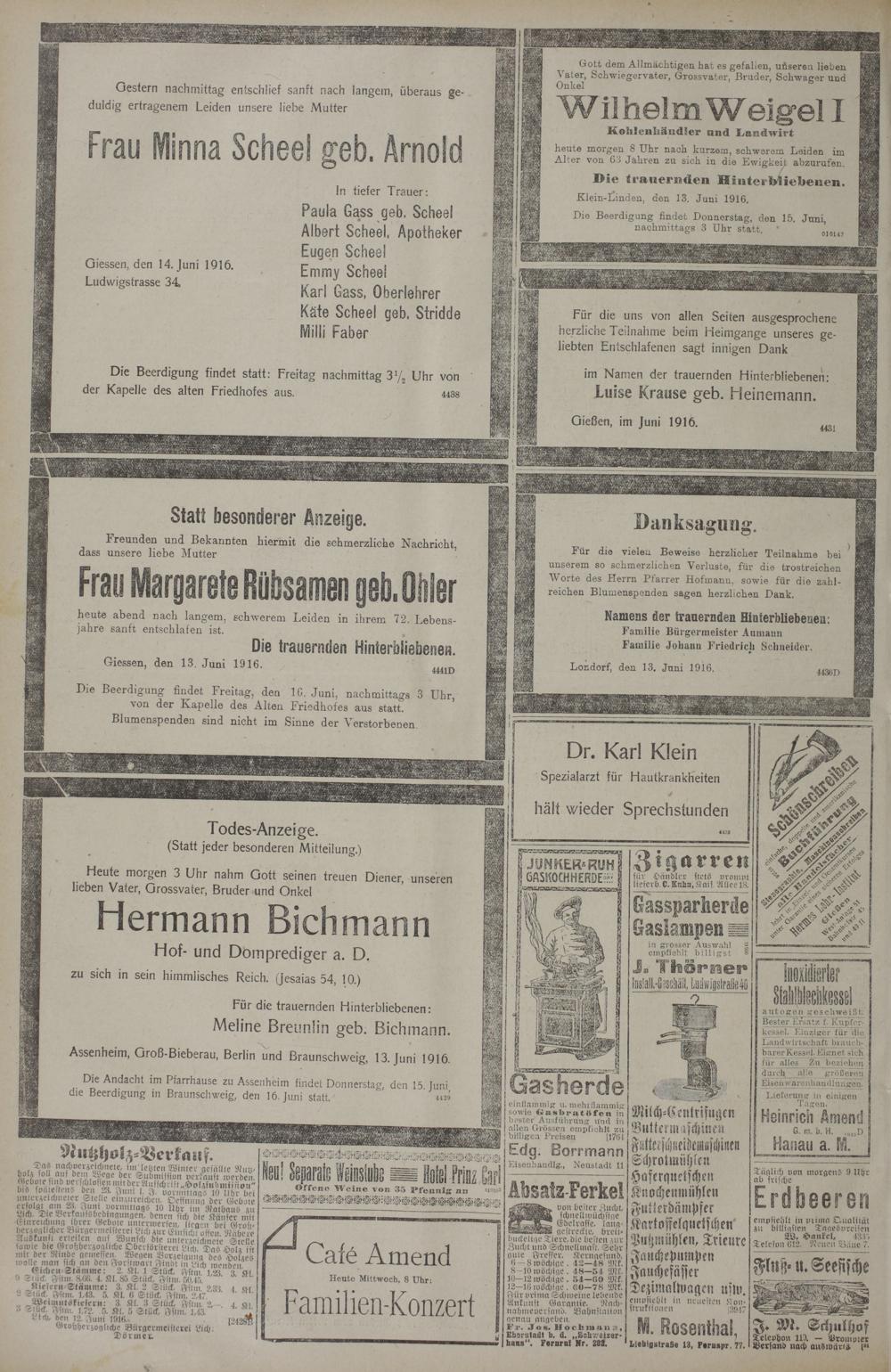 Giessen, den 14. Juni 1916. Ludwigstrasse 34