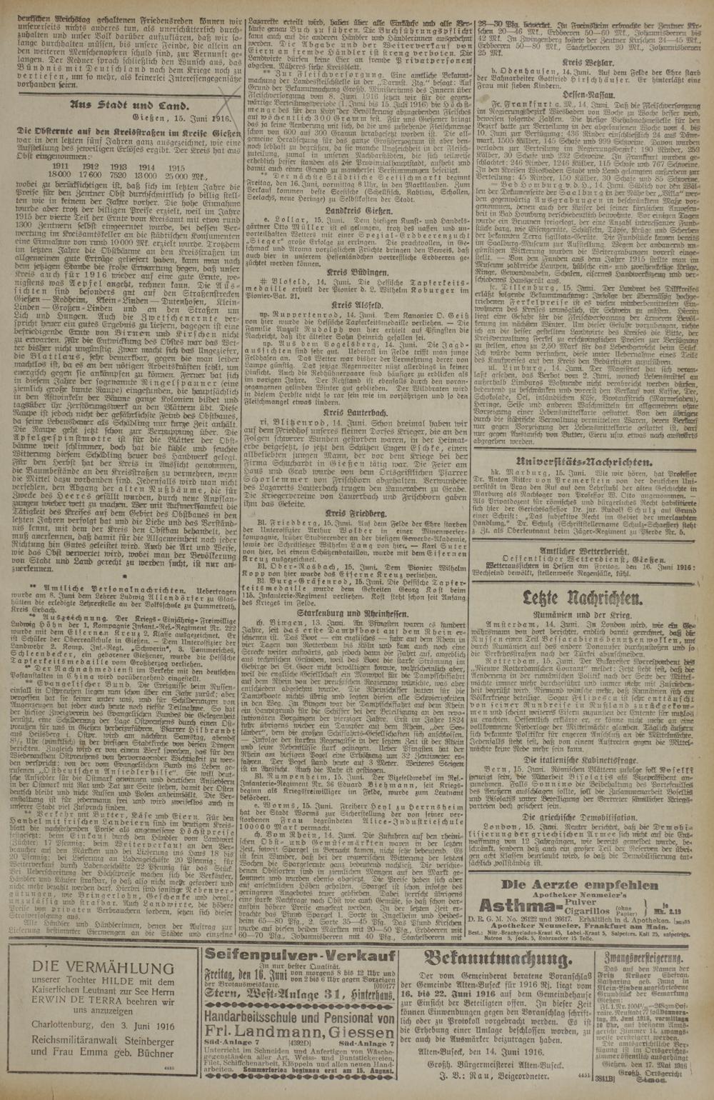 Gießen, 15. Juni 1^>16;