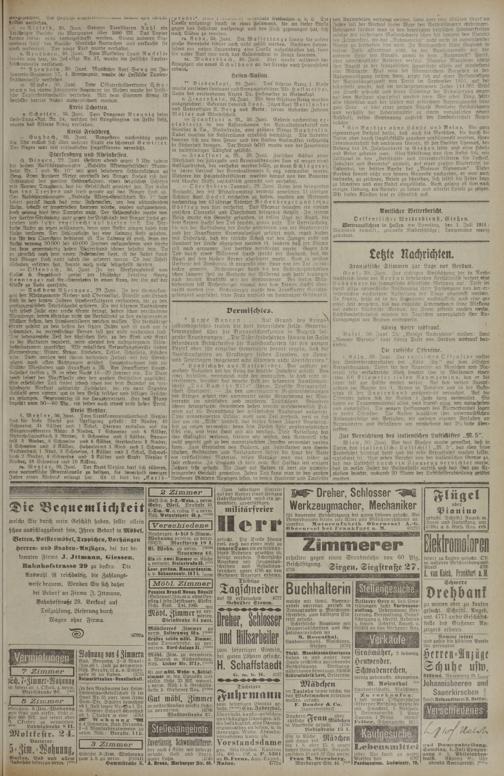 " Biedenkopf, 29. Juni. Das' Eiserne Kreuz 1. Klaffe wurde verliehenLeutrrant undKompagnieführer Alb. H off m e i st er, Sohn des verstorbenen Arztes Dr. Hoffmeister in Biedenkopf.