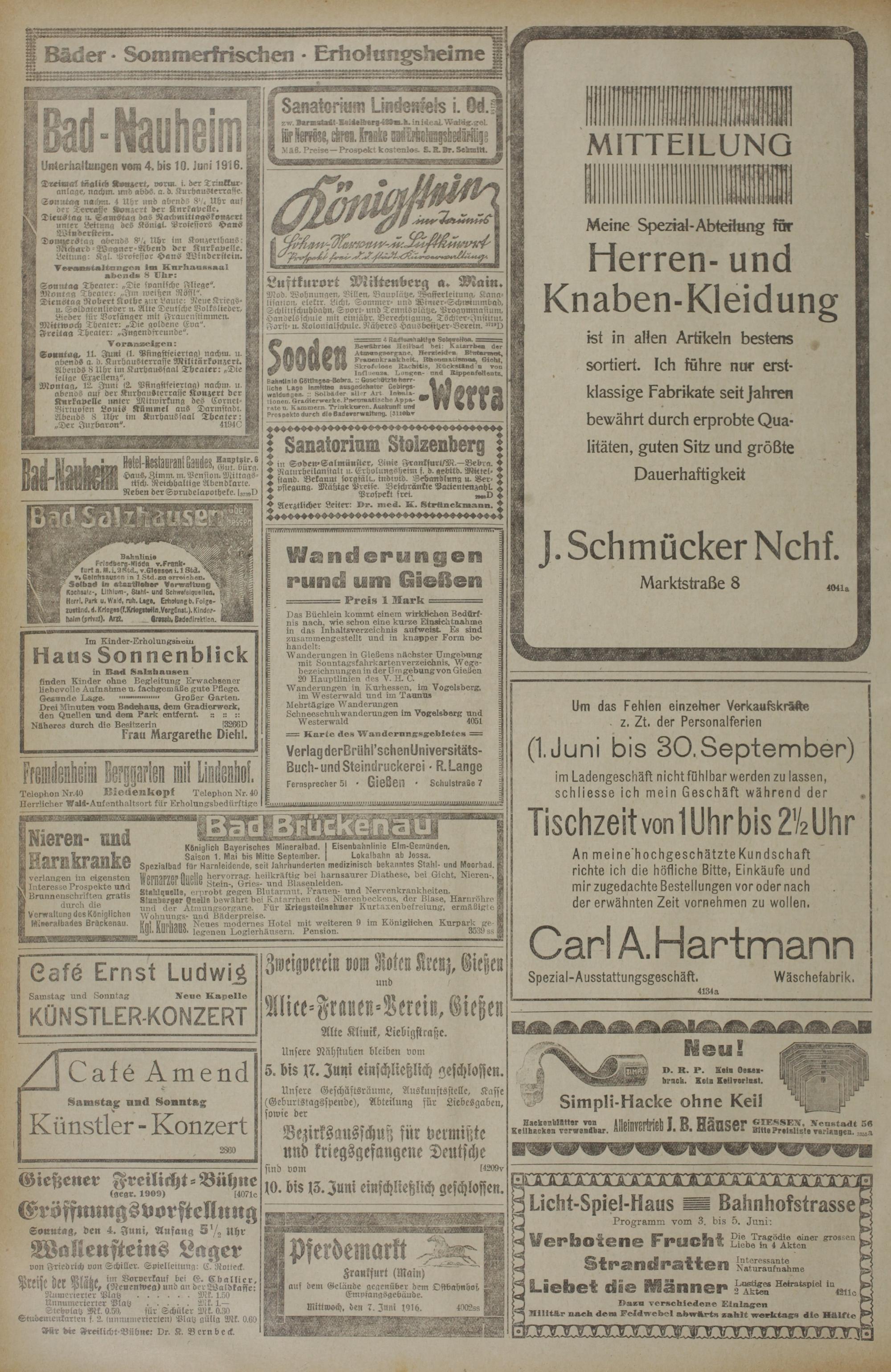 Unterhaltungen vom 4 . bis 10 . Juni 1916 .