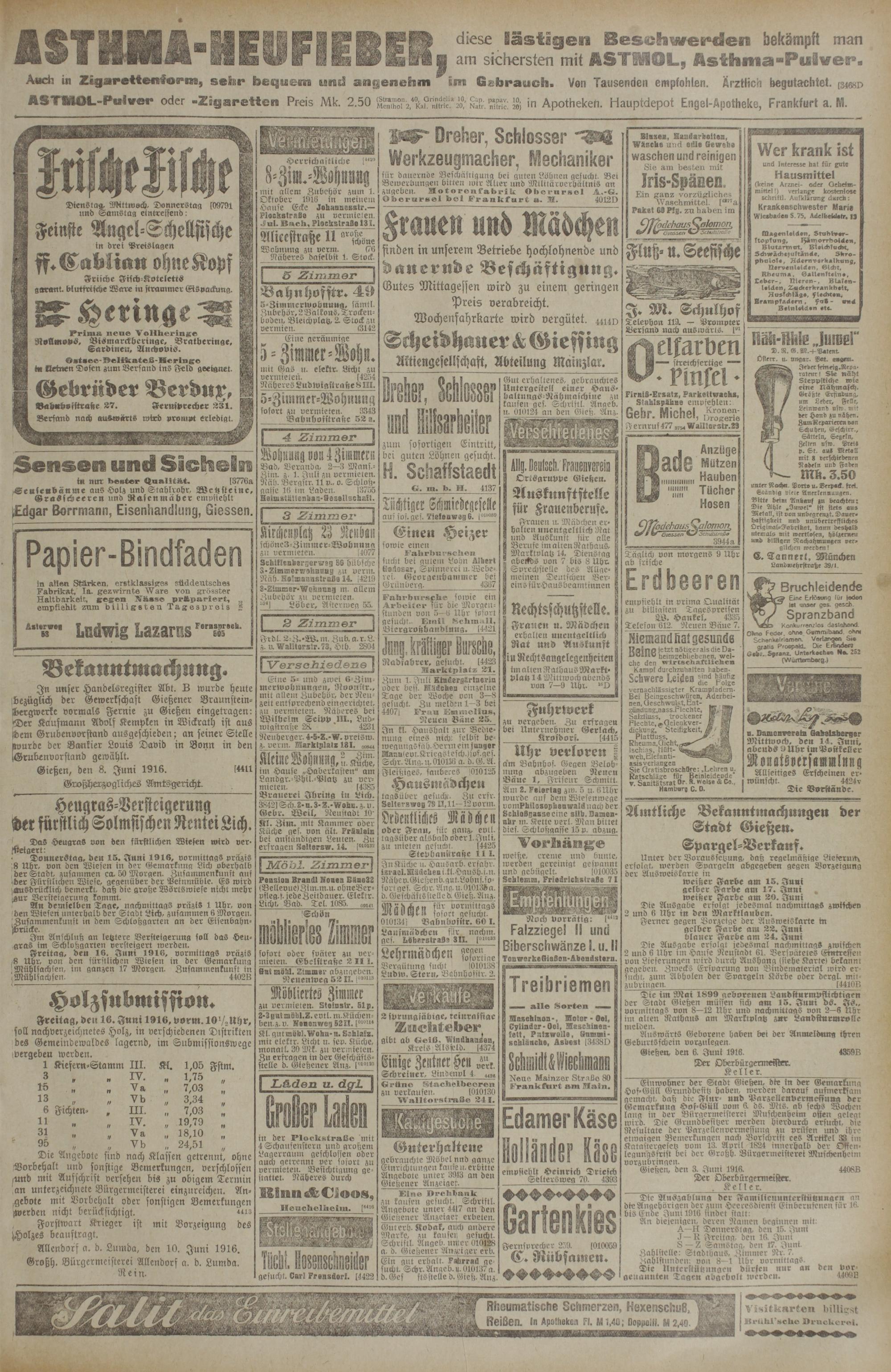 Gießen, den 8. Juni 1916. [4411