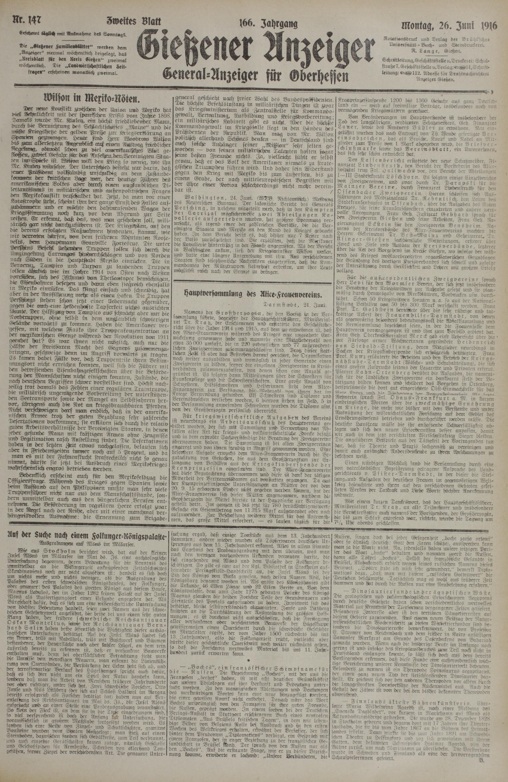 Washington, 24. Juni. (WTB. Nichtamtlich!.) NLeldung w» Reuter,chen Bureaus. Der lakonische Bericht des Generals p e r s ch i n g , rn nelchenr mitgeterlt tvird, daß! in den Kämpfen rzal mögkicherwerse zwei Abteilungen Ka- ^Lllerre auf gerieben würden, hat größere Spannung ver-- urfacht, als irgend einer der öMreichen Vorfälle, die die Ber- enngten Staaten und> Mexiko an den Rand des Krieges gebracht dabeu m dem Bercht heißt es, daß btzher nur 7 Reiter nach der Basis zurück gekehrt sind. Sie erzählten, daß die Msxikaner dre Kavallerie hinterlistig in der Flanke angegriffen. Als der Bericht ur Washington ankam, ließ der Kriegsminister Mlson werken, und hatte erne längere Unterredung mit ihm. Ans verschiedenen Staaten sind telephonische ^Lachrichten eiugetroffen, daß die Kom- ^^ndanteu der Milichruppen fieberhaft arbeiten, um ihre Leute möglichst rasch nach! der Grenze zu bringen.