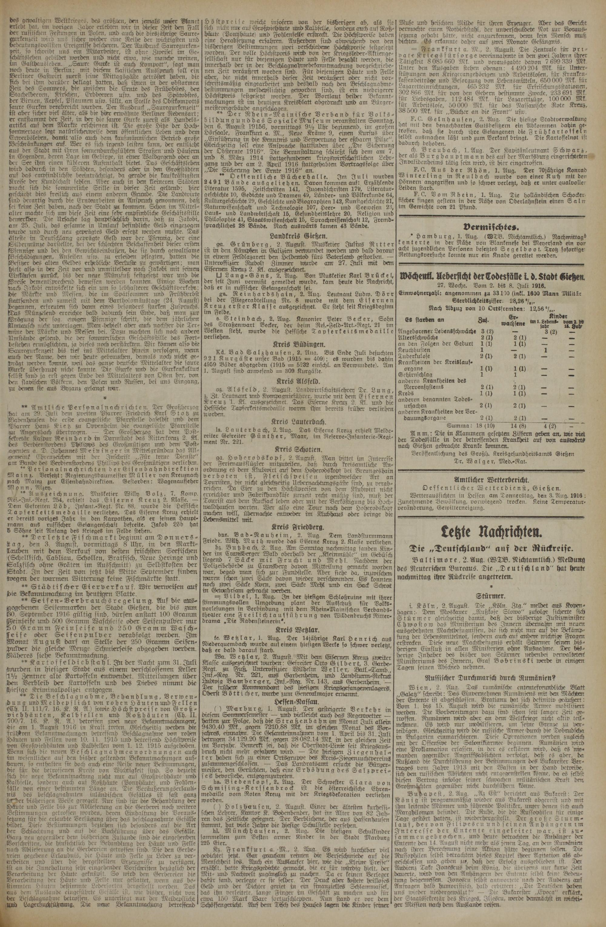 bnz. Bad-Nauheim, 2. Aug. Dem Landsturmmann Friedr. Wilh. M u t h wurde das Eiserne Kreuz 2. Klaffe verliehen.
