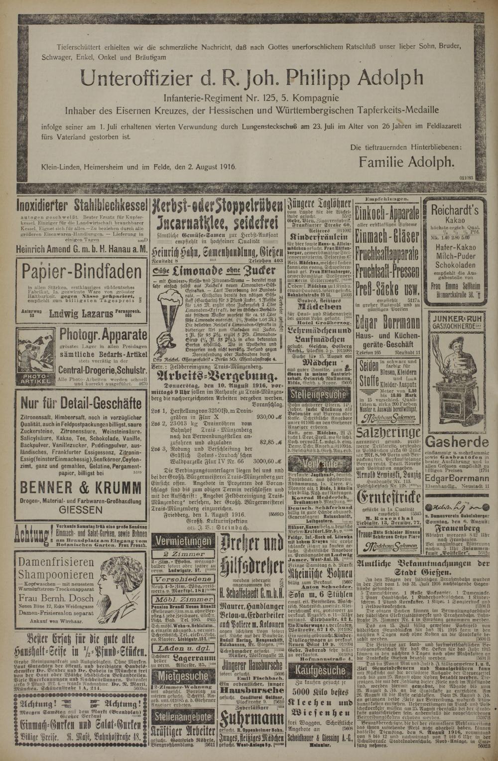 Friedberg, den 1. August 1916. [55890