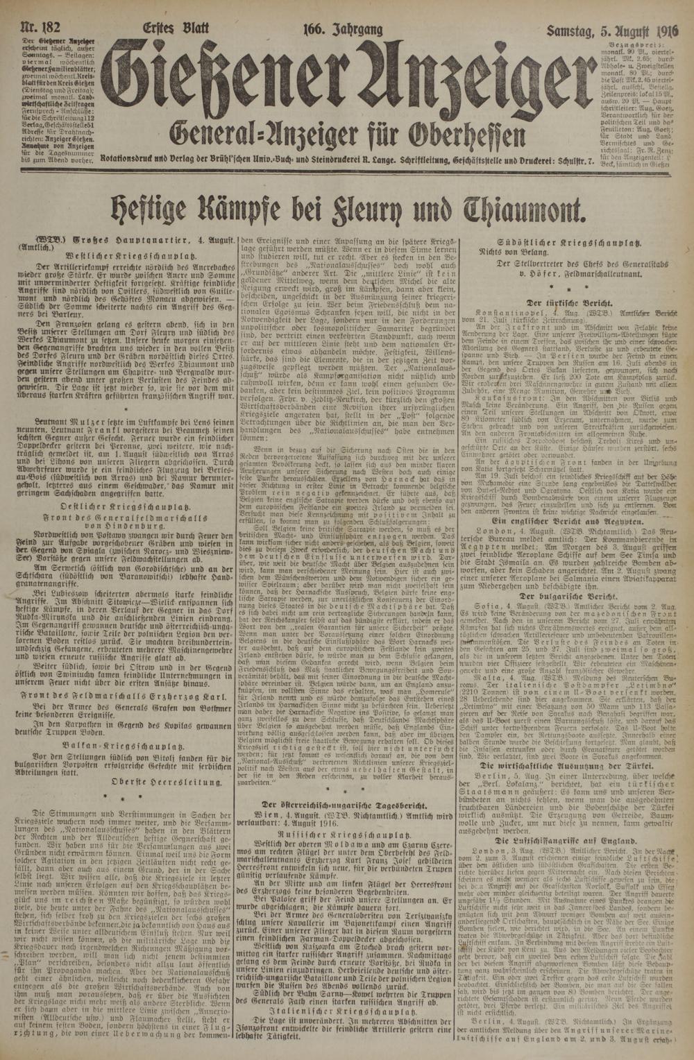Leutnant Mulzer setzte im Luftkampfc bei Lens seinen neunten. Leutnant Frankl vorgestern bei Beaumetz seinen sechsten Gegner außer Gefecht. Ferner wurde ein feindlicher Doppeldecker gestern bei Peronne, zwei weitere, wie nachträglich gemeldet ist. am 1. August südwestlich von Arras und bei Lihons von unseren Fliegern abgeschossen. Durch Abwehrfeuer wurde je ein feindliches Flugzeug bei Derles- au-Bois (südwestlich von Arras) und bei Namur heruntergeholt. letzteres aus einem Geschwader,' das Namur mit geringem Sachschaden angegriffen hatte.