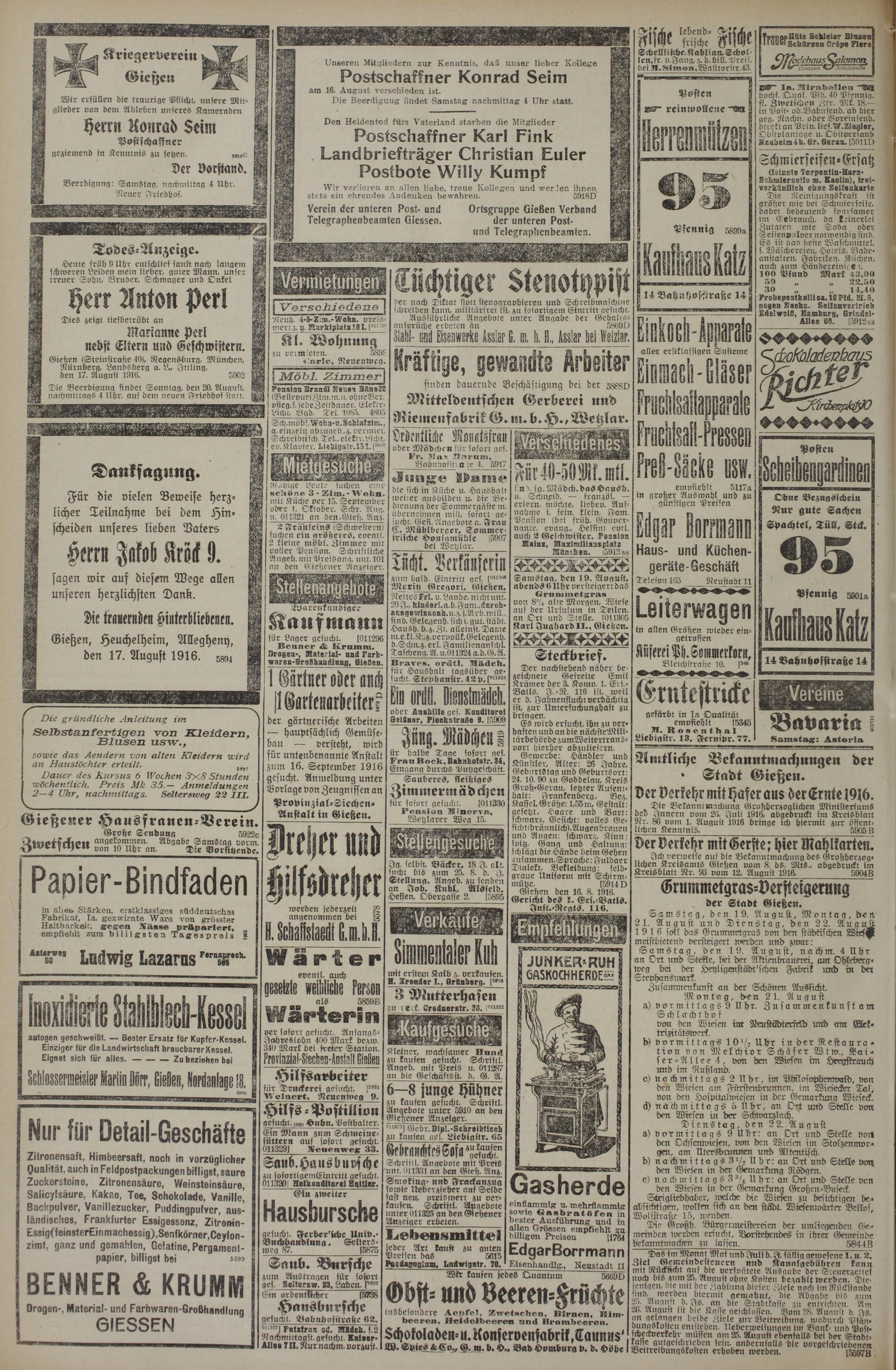 Gießen, Heuchelheim, Allegheny, den 17. August 1916. 5394