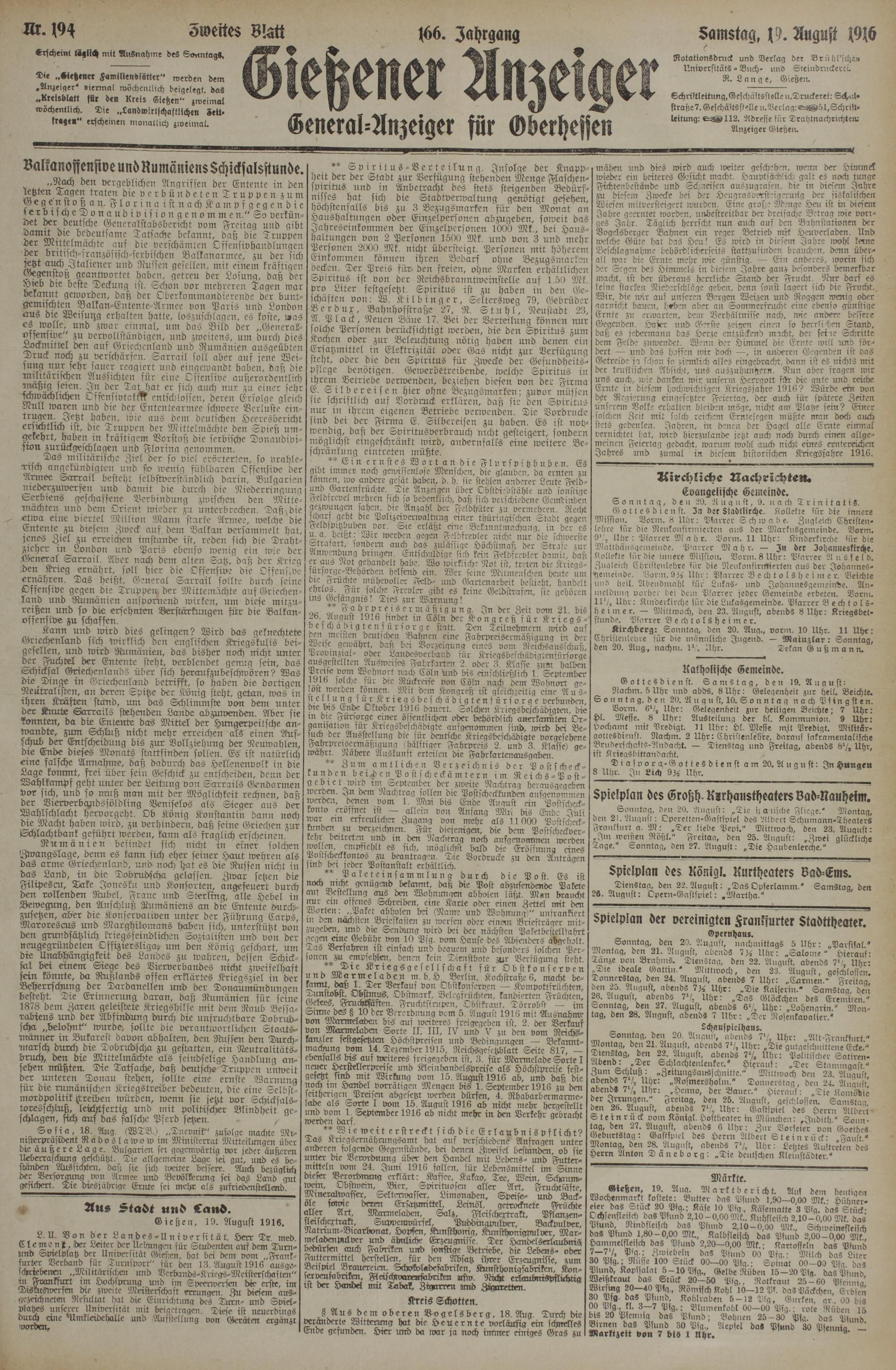 Gießen, 19. August 1916.