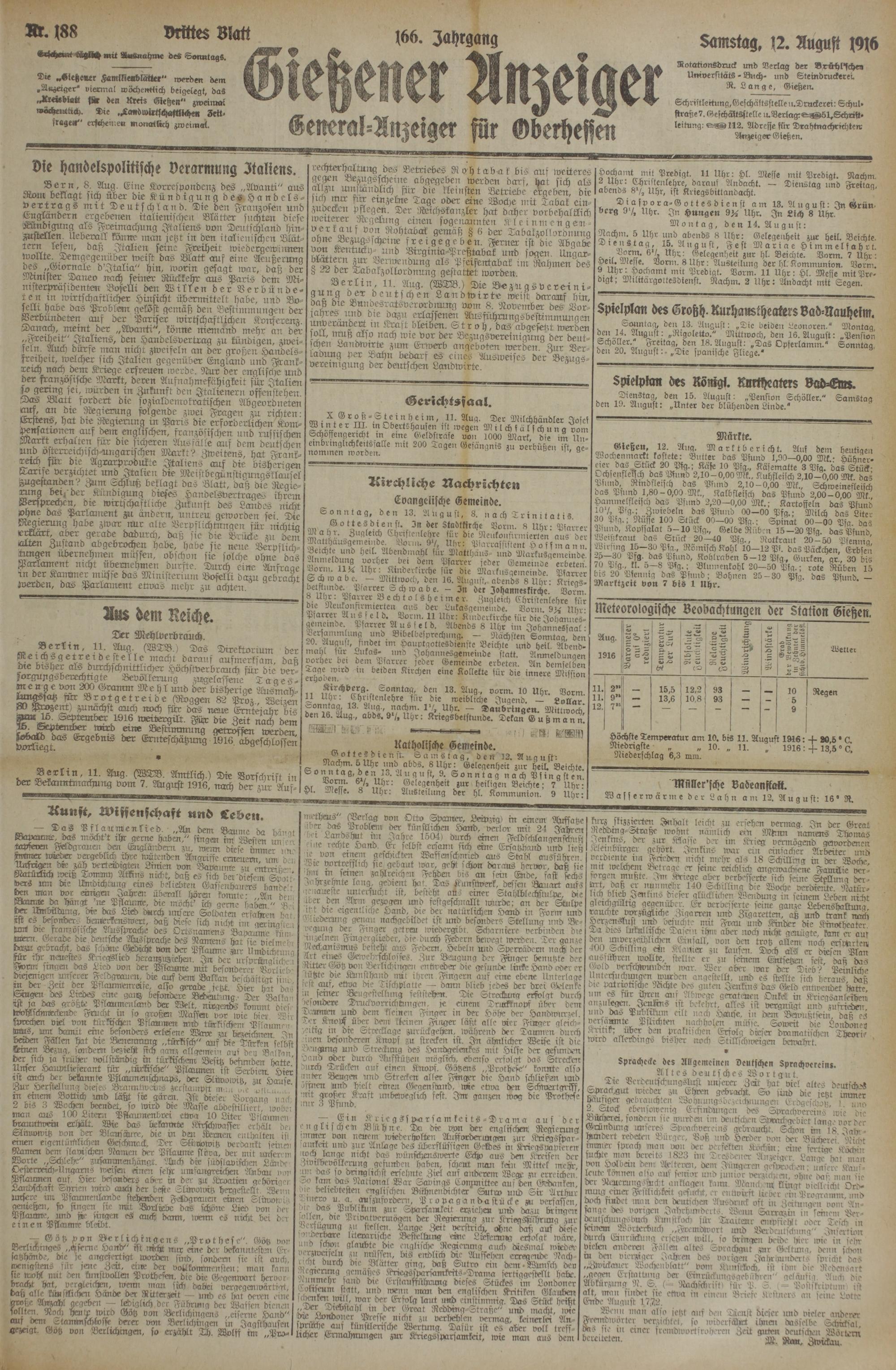 Diaspora-Gottesdienst am 13. A u q u st: In Grün- bcrg 9/, Uhr. In Hungen 9% Uhr. In Lich 8 Uhr.