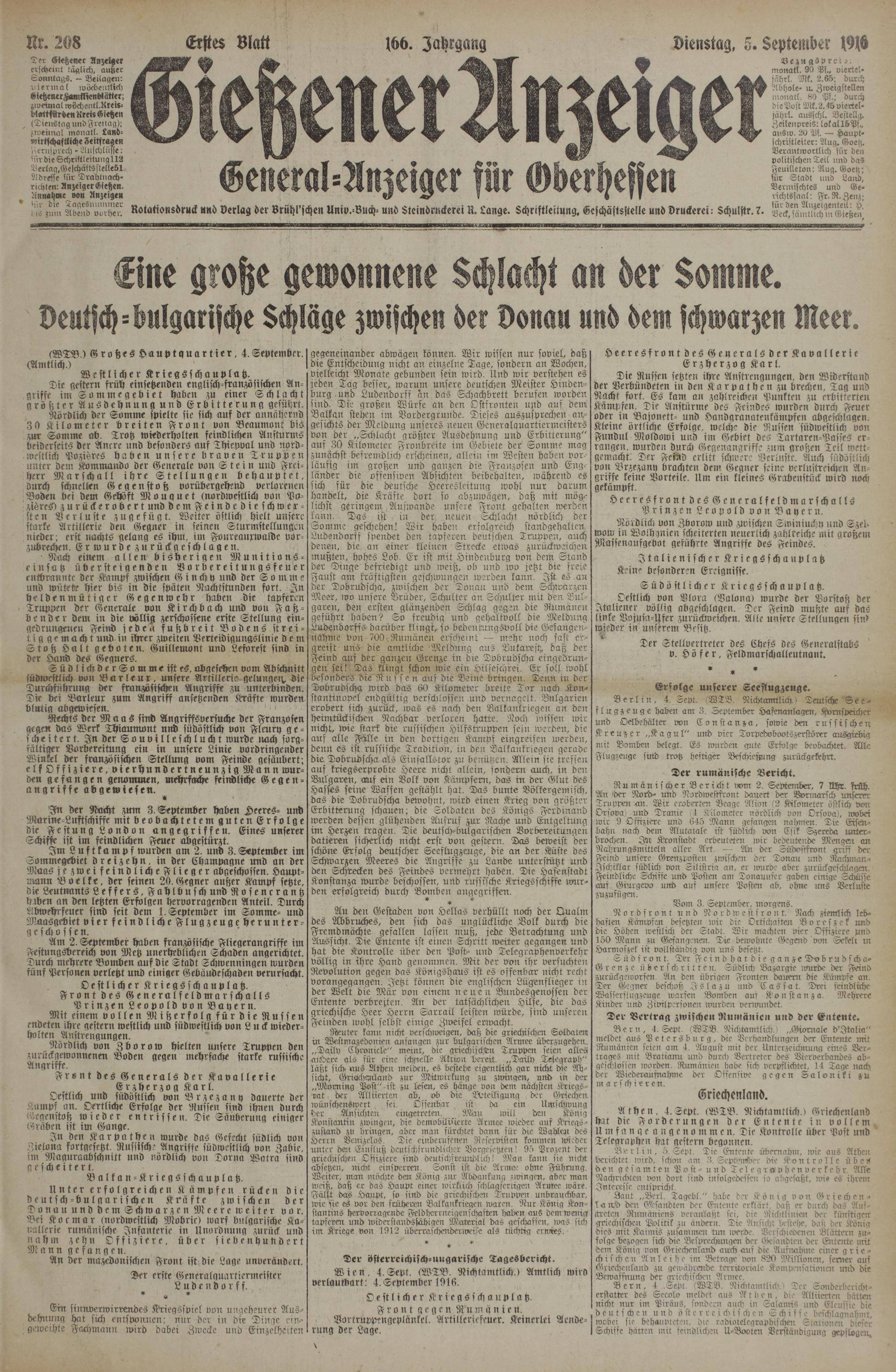 Die gestern früh einsetzenden englisch-französischen Angriffe int Sommegebiet haben zu einer Schlacht größter Ausdehnung und Erbitterung geführt.