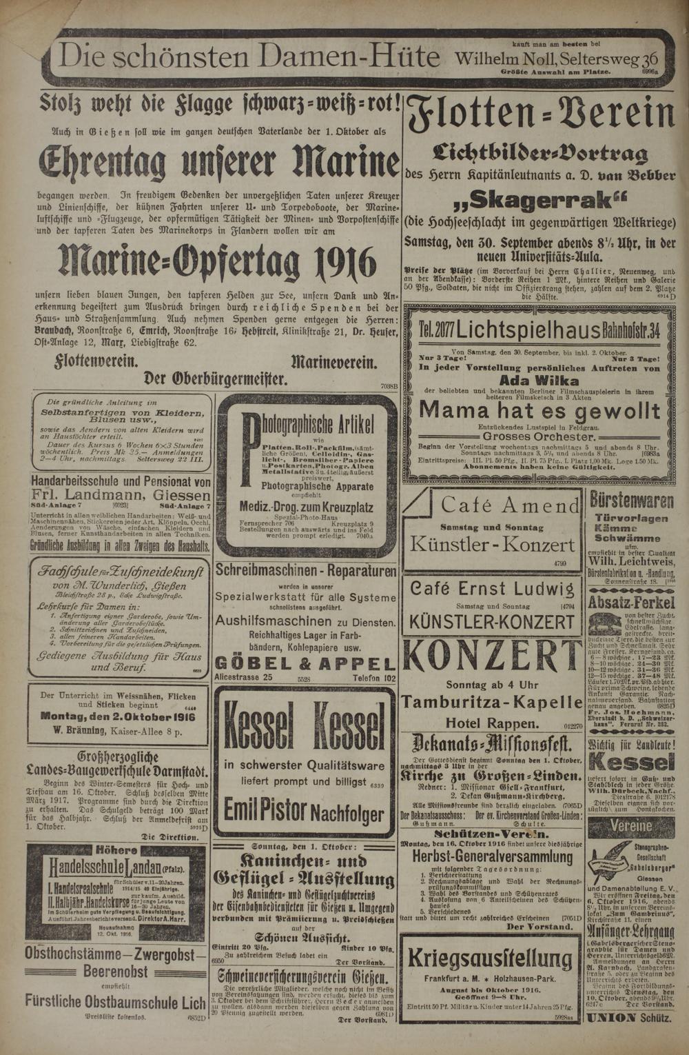 Montag, den 16 . Oktober 1916 findet unsere diesjährige