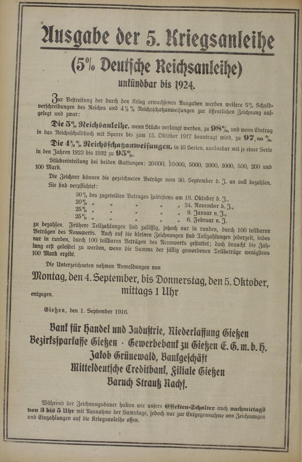 Gießen, den 1. September 1916.