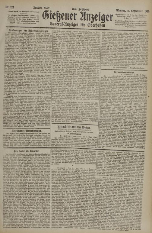 Die .Mehener FamMenblAler" werden den, »Anzeiger^ vrermal wöchentlich beigelegt das ..LLreiLblatt für den K«{$ Gietzen- zweimal wöchentlich. Die ..Qmdwirt-chafUjche« Zett- fr<tztN^ erscheinen rnonallich zweimal.