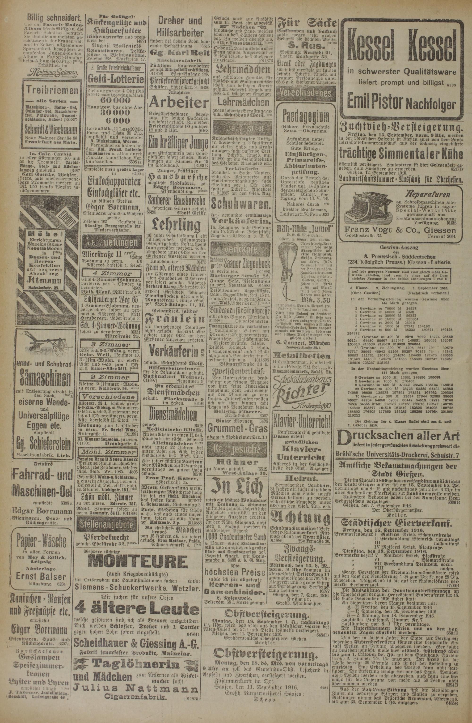 Giehen, den 7. September 1916.