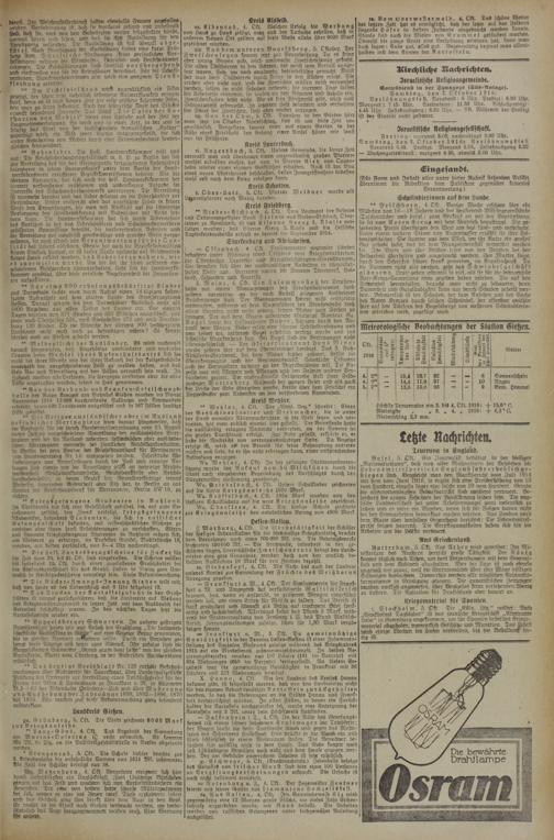 r. Ober-Lais, 5. Okt. Psarrer Weidner wurde als Lazarettpfarrer nach Mainz berufen.