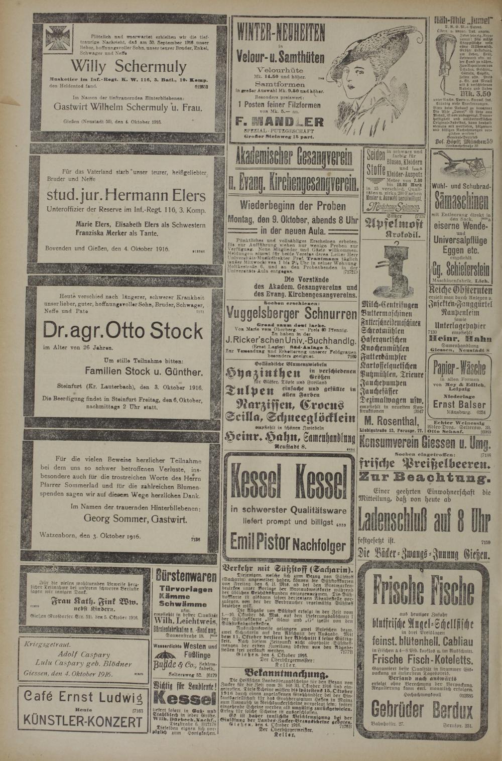 Gießen (Neustadt 55), den 4. Oktober 3916.