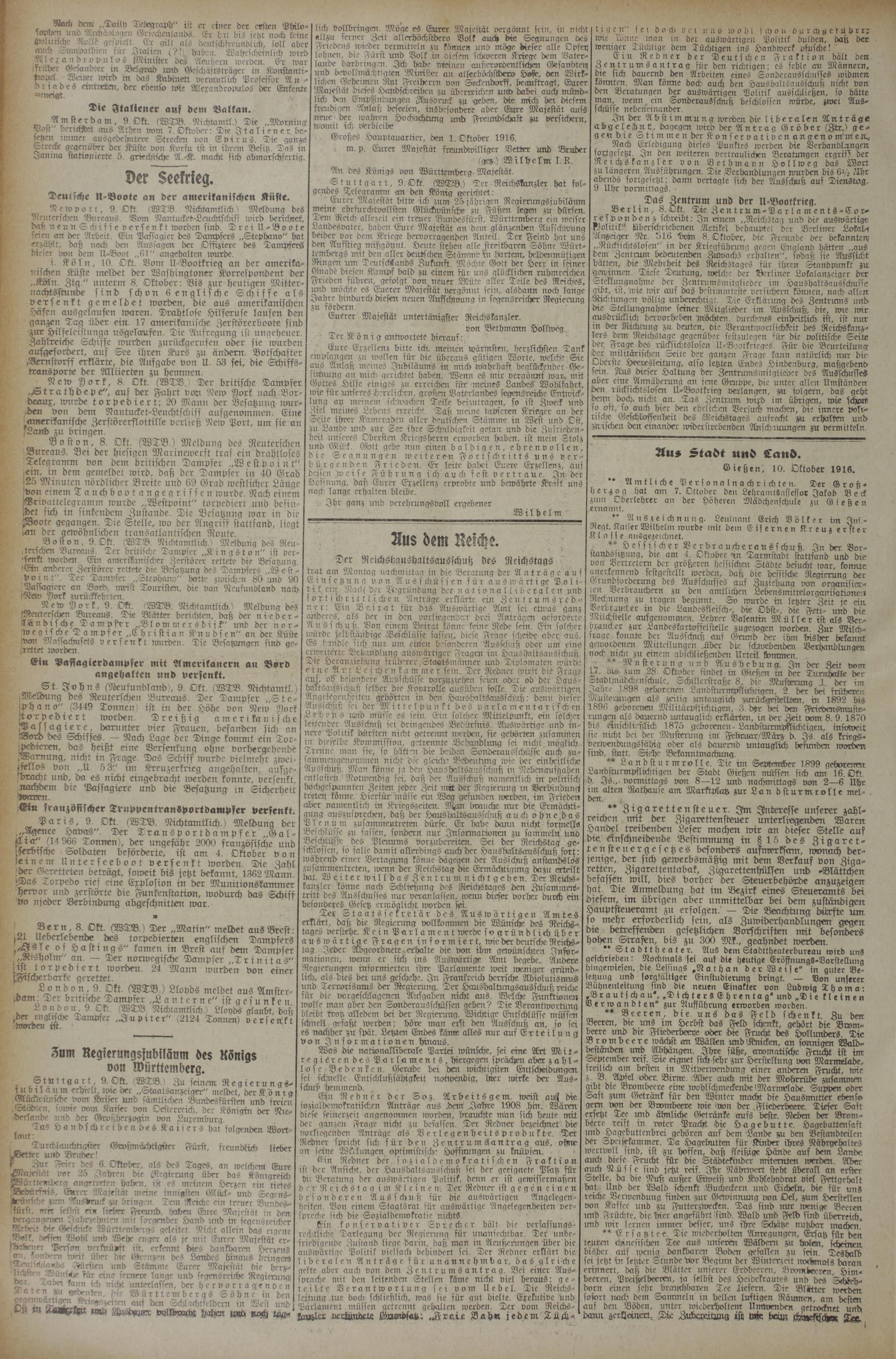 G ießen) 10. Oktober 1916.
