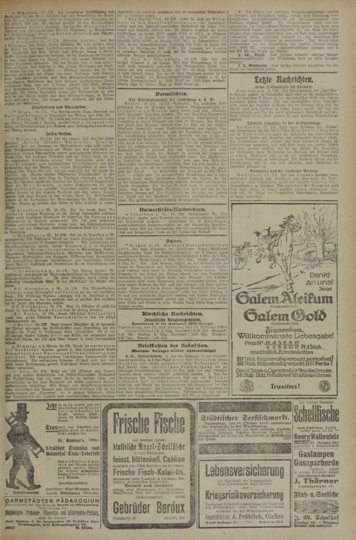 4 Kvinuagnie Inf.-Mgtc-. Kaiser Wilhelm Nr. 116, welcher schon im Besitze der hessischen Tapftrkeftsmed-aftle ist, erhielr nun auch L Äfejt vor &cm «rindc idas ®ifmw »reu» 2. «Waffe, fitnfler D block einer von. Iden Iwenigen, die bei'Ausbruch des Krieges, in den ersten Tagen des Maust 1914, als junger Reservist mit rhvem Regi mente aus zogen. Bis vor kurzem war er noch MtVeo- kehrt geblieben- Nun befindet er sich, infolge Verletzung am Kopse, in »nnem Lazarett in Sachsen. — Montag morgen um 10 Uhr Itturden lurrterhalb des sOrtes aus 'dem Feldwege nach Gedern Kwiei entwÄbkne Irländer aus dem Miegsgesangenenlager im, benachbarten Busenborn von dem hiesigen wachhabenden Land- ttcbrmann Fritz, von der 4. Komp. Landsi.-Jns.-Batl. Wetzlar im^d herbeigeeilten Ortseiichvohnern ergriffen und in ^ Sicher heit aebrackch. Die beiden Apsreißer gaben ihre Nationalität an und, da'h sie am .Achend vorher aus dem Gefangenenlager in Bu) eitern entnnchen seien. Sie tragen ihre Uniform' mit den Kennzeichen als Gefangene.