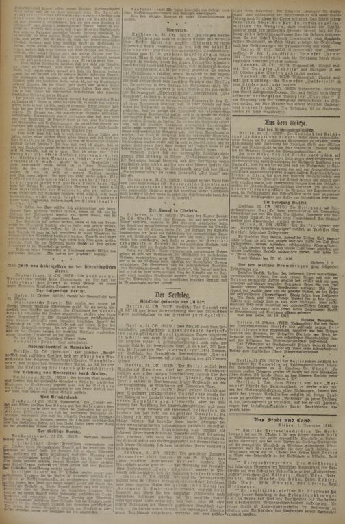 Berlin, 31. Okt. (WTB.) Drei kürzlich nach dem Heimatshafen zurückgekehrte Unterseeboote versenk- t e n i m e n gli s ch e n K a n a l in wenigen Tagen insgesamt