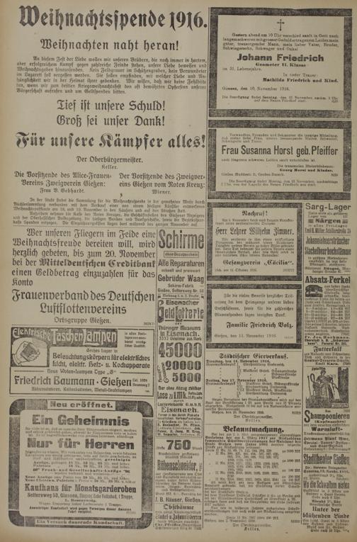 Wer unseren Fliegern im Felde eine Weihnachtsfreude bereiten will, wird herzlich gebeten, bis zum 20. November bei der Mitteldeutschen Kreditbank einen Geldbetrag einzuzahlen für das Konto