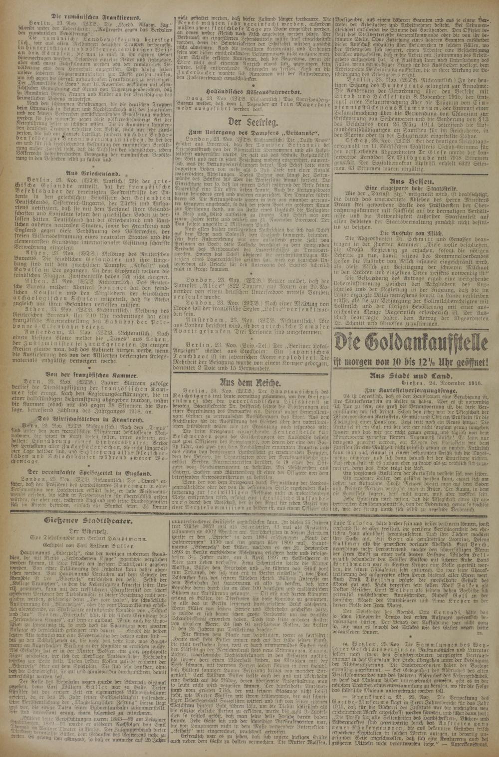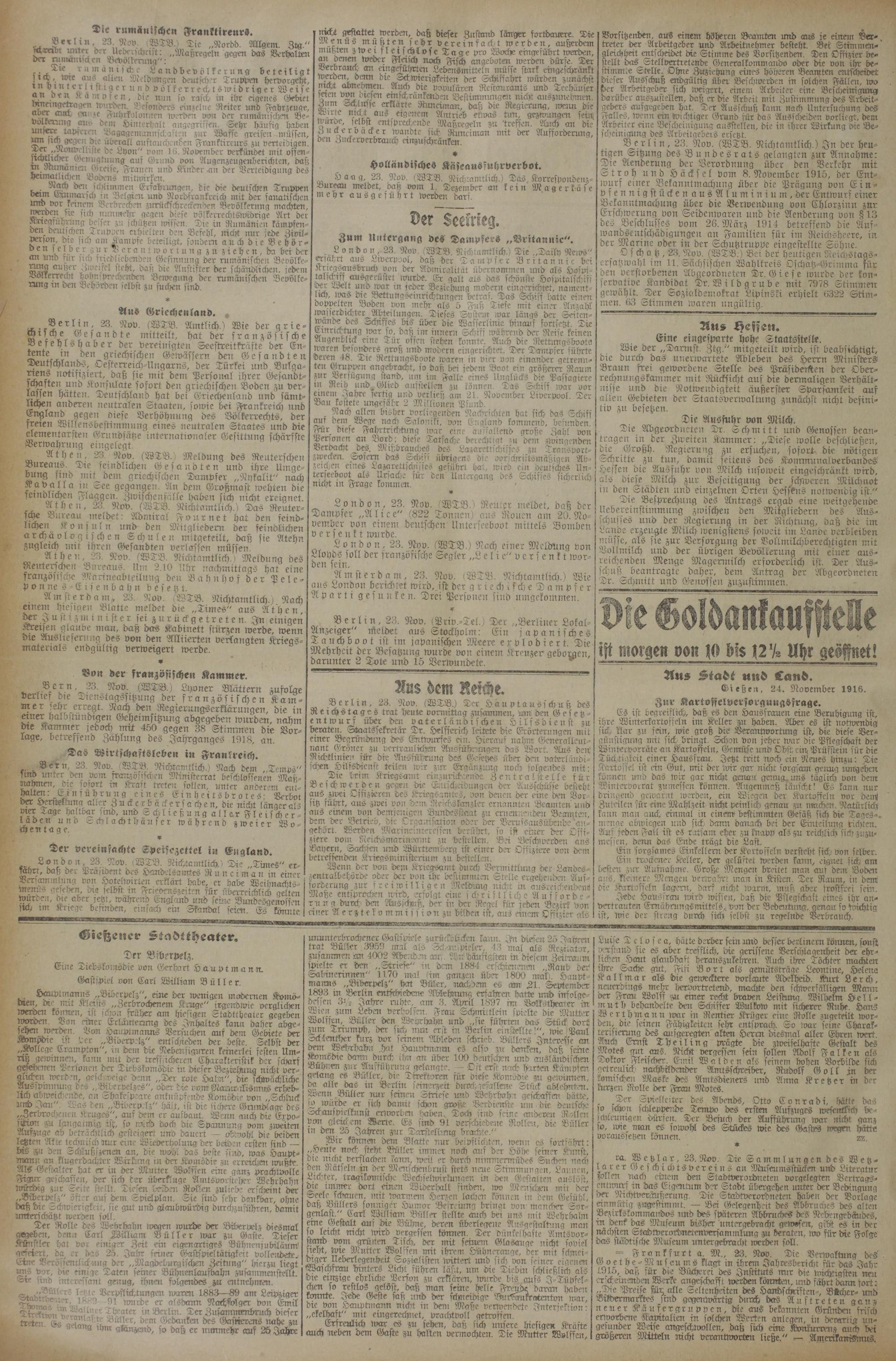 Gießen. 24. November 1916. Zur KarLoffeLversorgungsfrage.