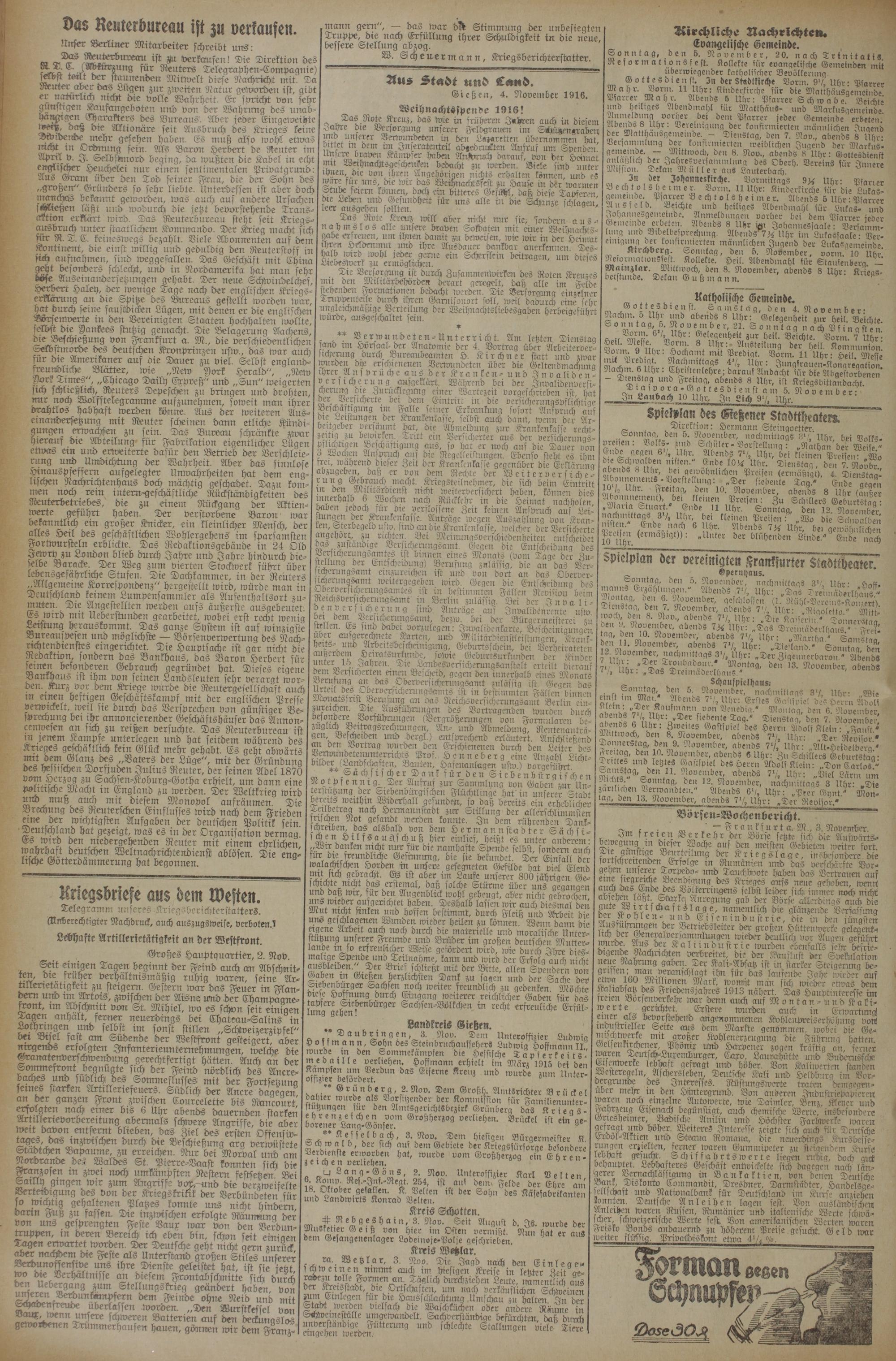 Gießen, 4. November 1916. Weihnachtsspenbe 1916!