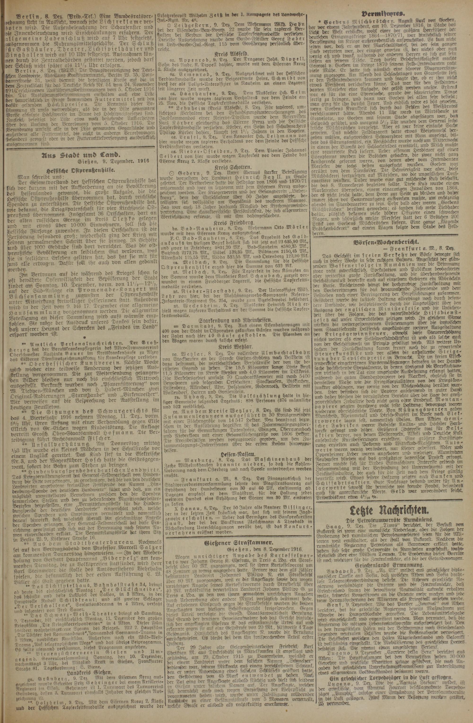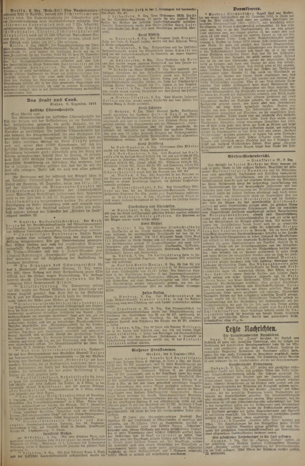 Gießen, 9. Dezember. 1916