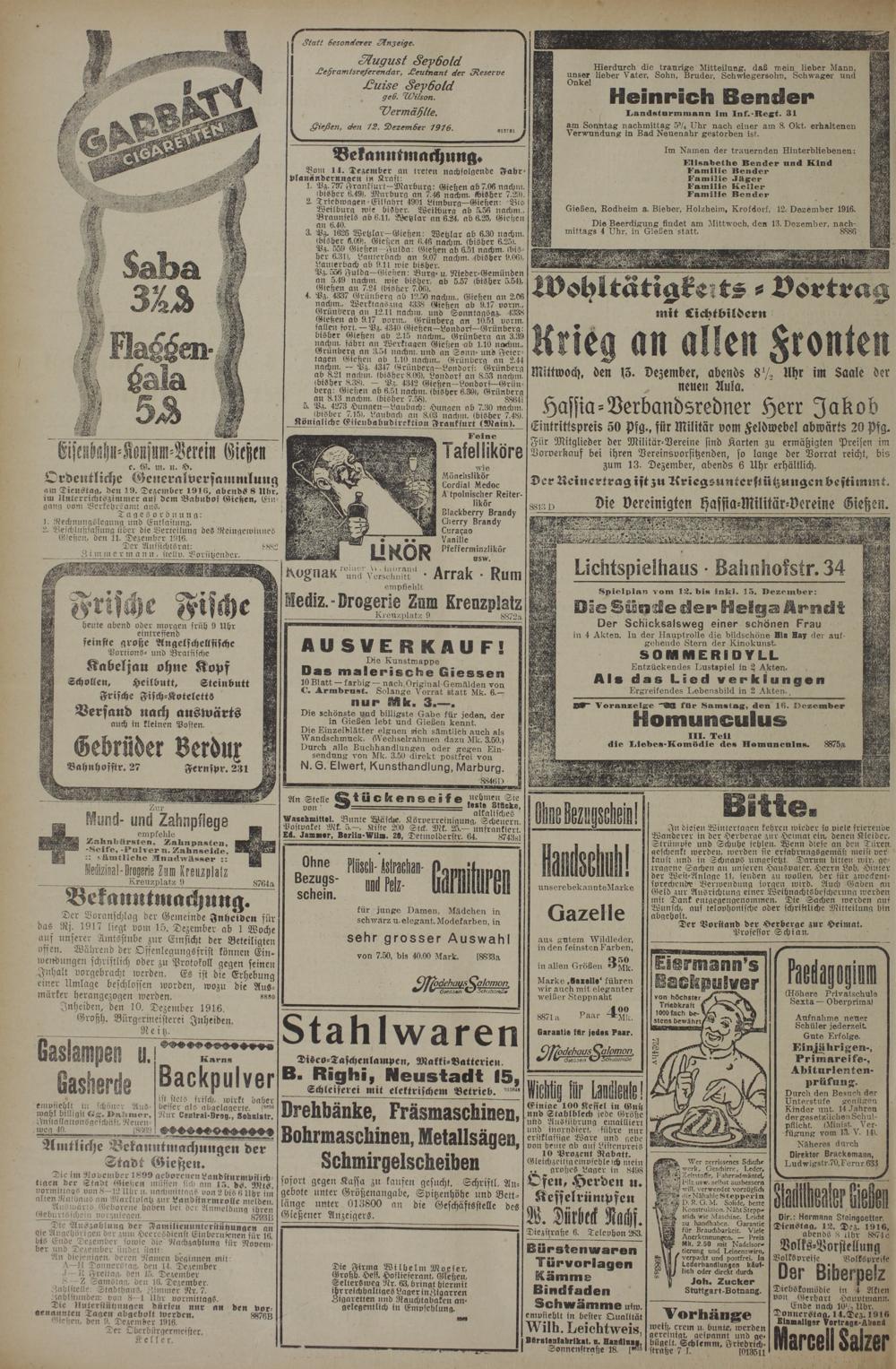 Gießen, den 11. Dezember 1916.