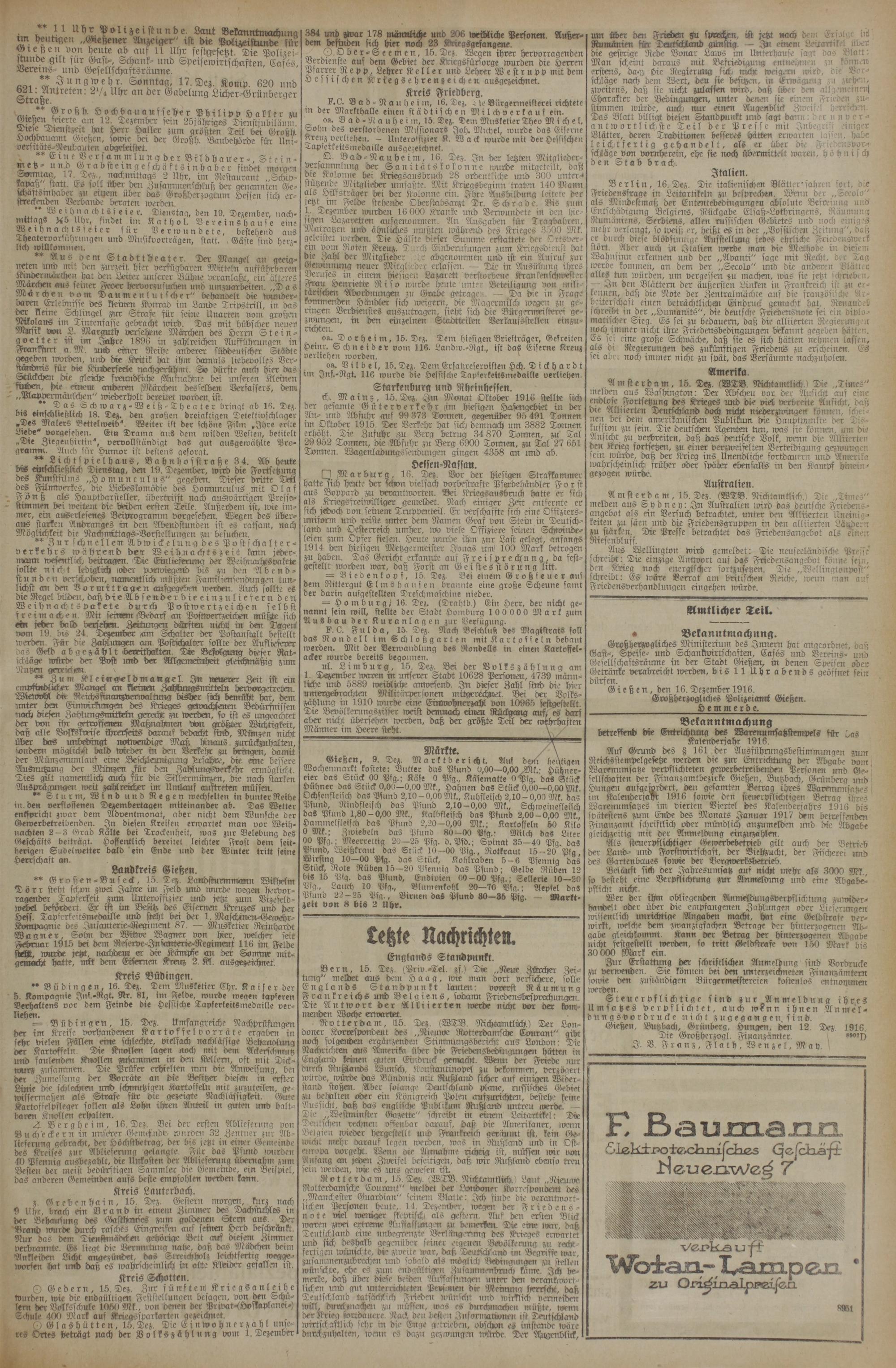 Gießen, Butzbach, Grimberg, Hungen, den 12. Dez. 1916.