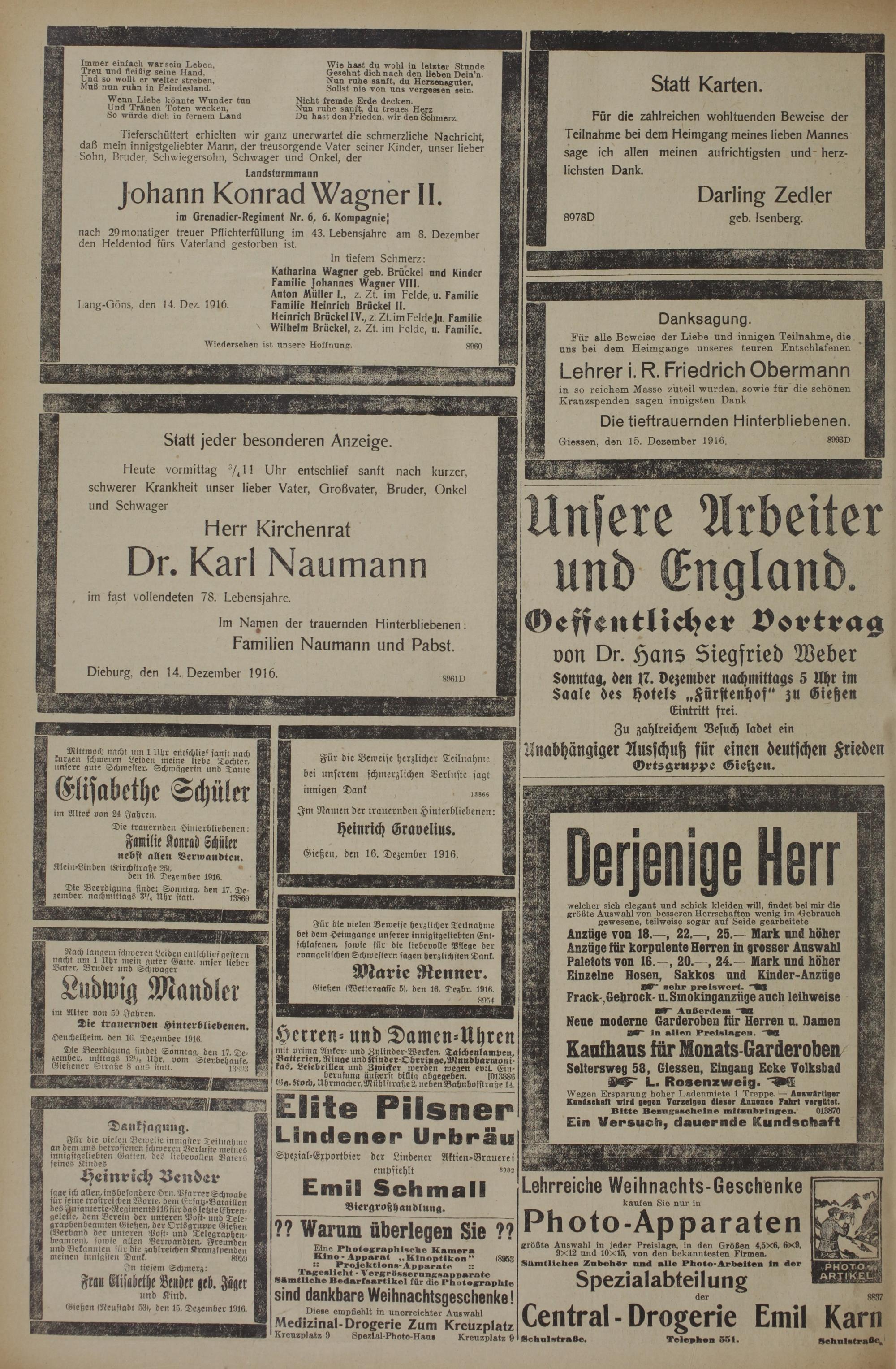Ziesten IWettergaffe 51, den 16. Dezbr. 1916.