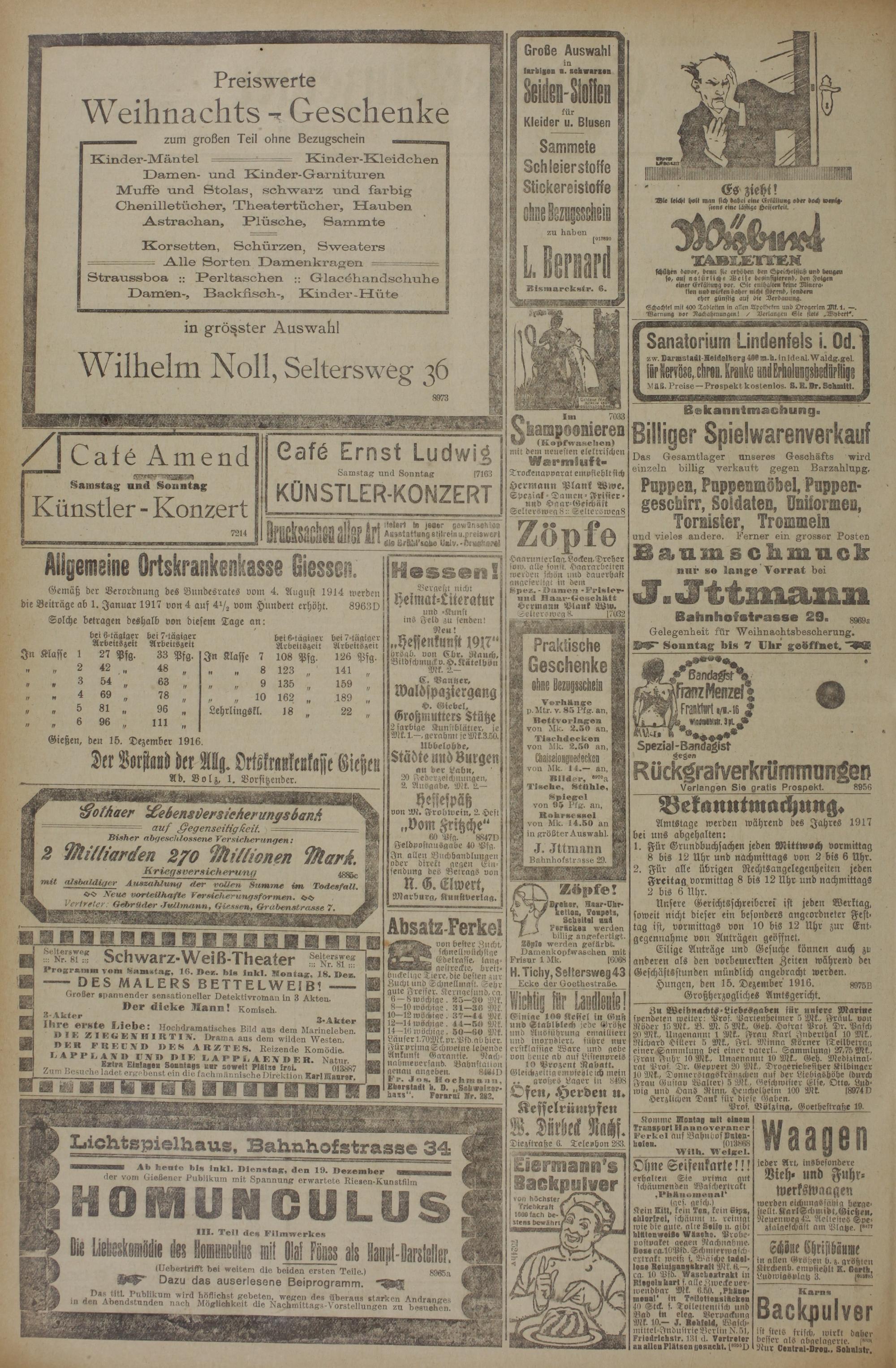 Gießen, den 15. Dezember 1916.