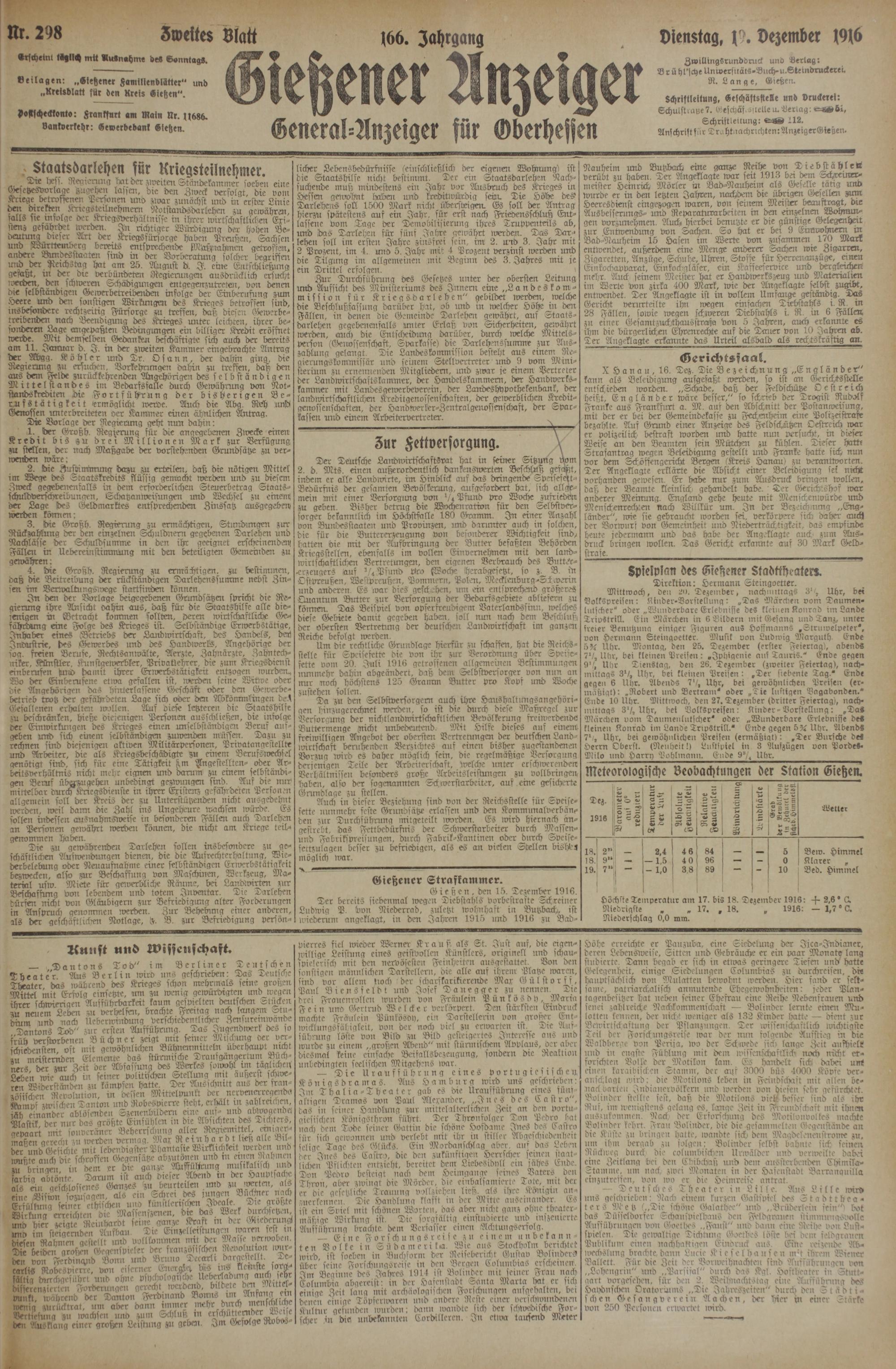 Gießen, dm 15. Dezember 1916.