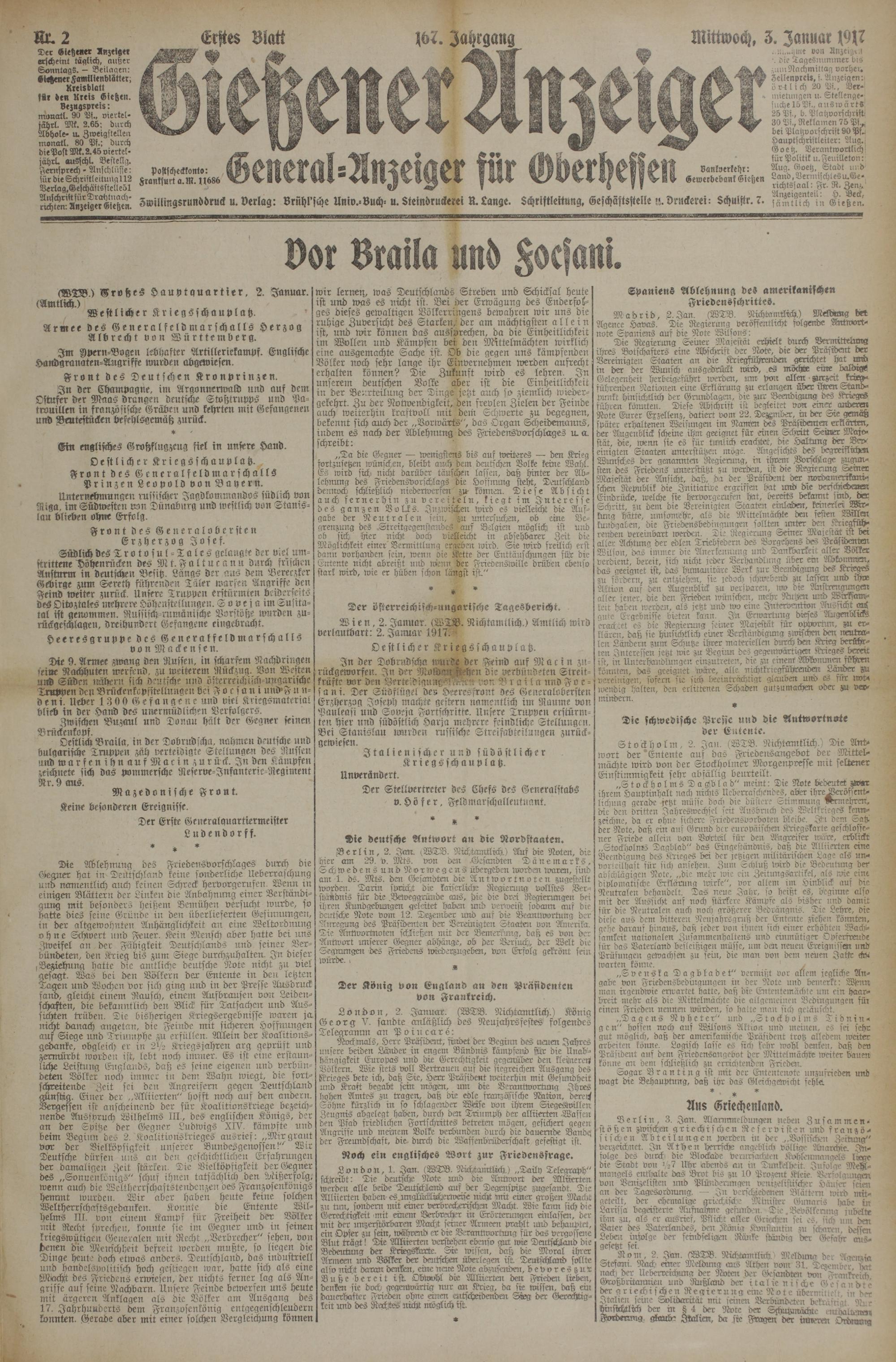 W i e n, 2. Januar. (WTP. Nichtamtlich.) Amtlich wird verlautbarti 2. Januar 1917.