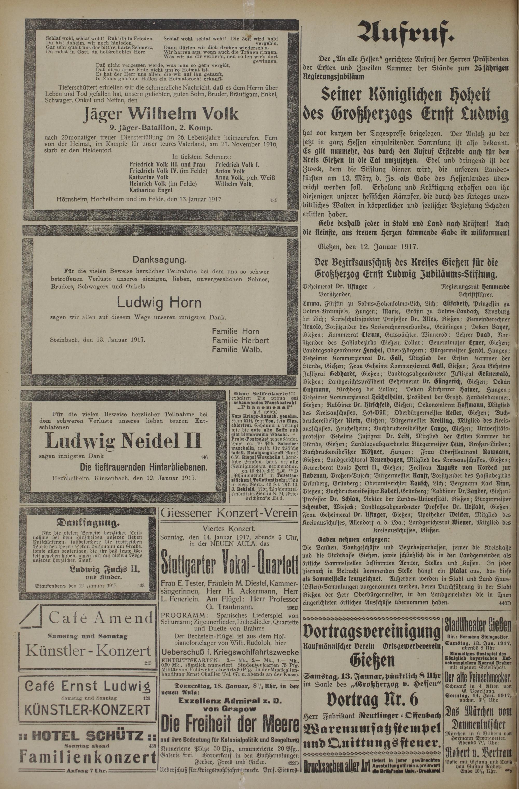 Heufchelheim, Kinzenbach, den 12. Januar 1917.