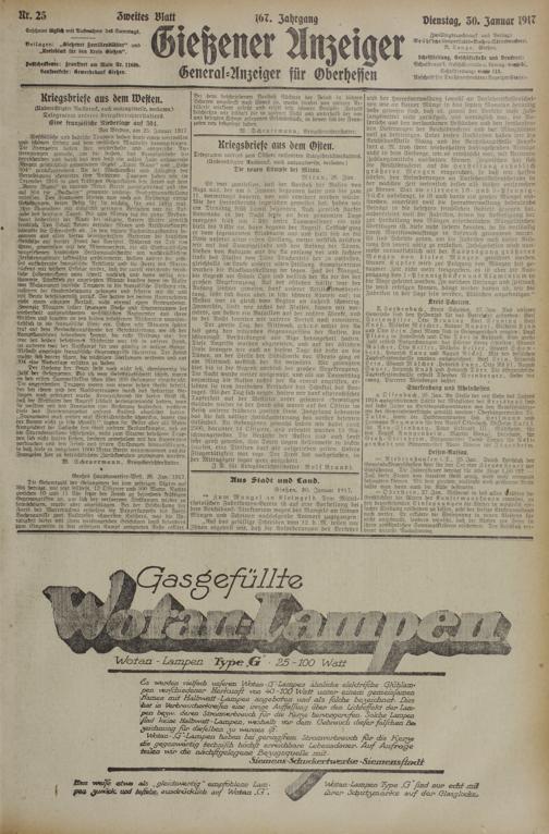 Anschrift für Drahtnachrichten: AnzeigerGießen.
