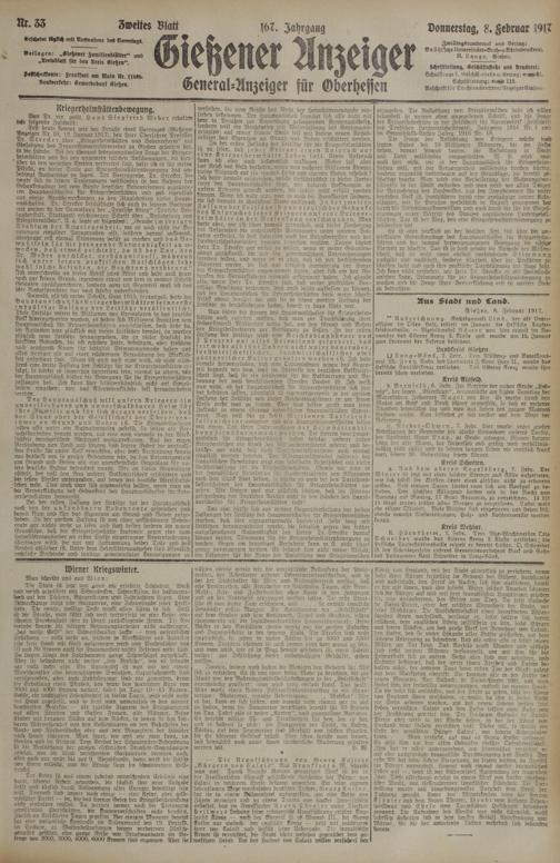 U 2ang-G 3nS, 7. F-ebr. Dem Assistenz- und Bataillons- arzt Ph. Frey, Sohn des Landwirts F. Konr. Frey II., wurde da« Hessische Sanitätskreuz verliehen. Dos Eiserne Kreuz wurde ihm bereits schon verliehen.