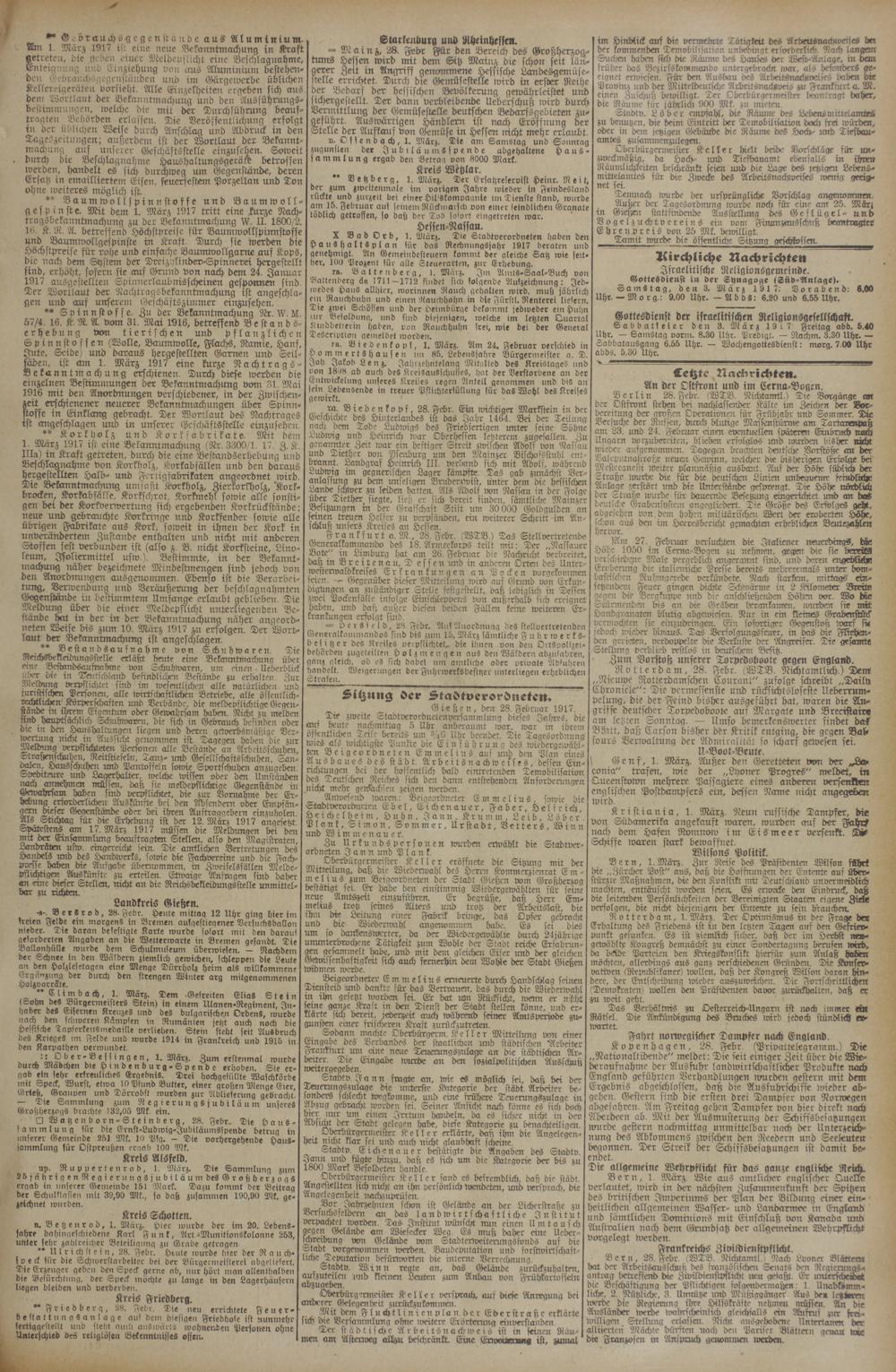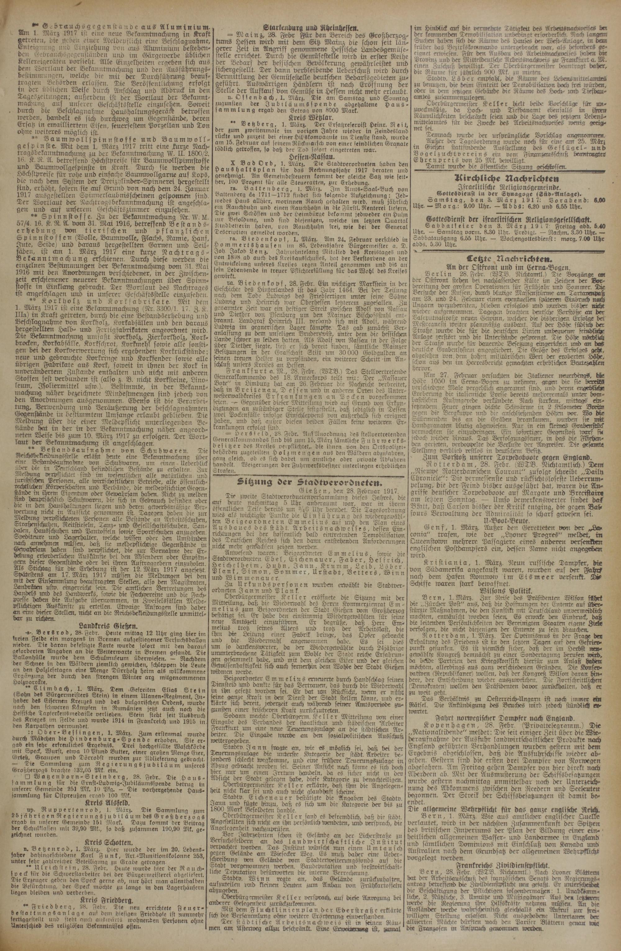 X Bad Orb, 1. März. Die Stadtverordneten haben den Haushaltsplan für das Rechnirngsjahr 1917 beraten und genehmigt. An Gemeindesteuern kommt der gleiche Satz wie seither, 100 Prozent für alle Steuerarten, zur Erhebiing.