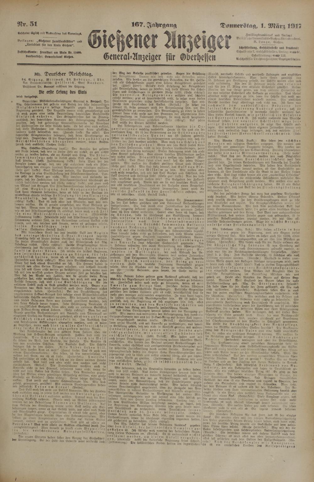 Anschrift für Drahtnachrichten: AnzeigerGießen.