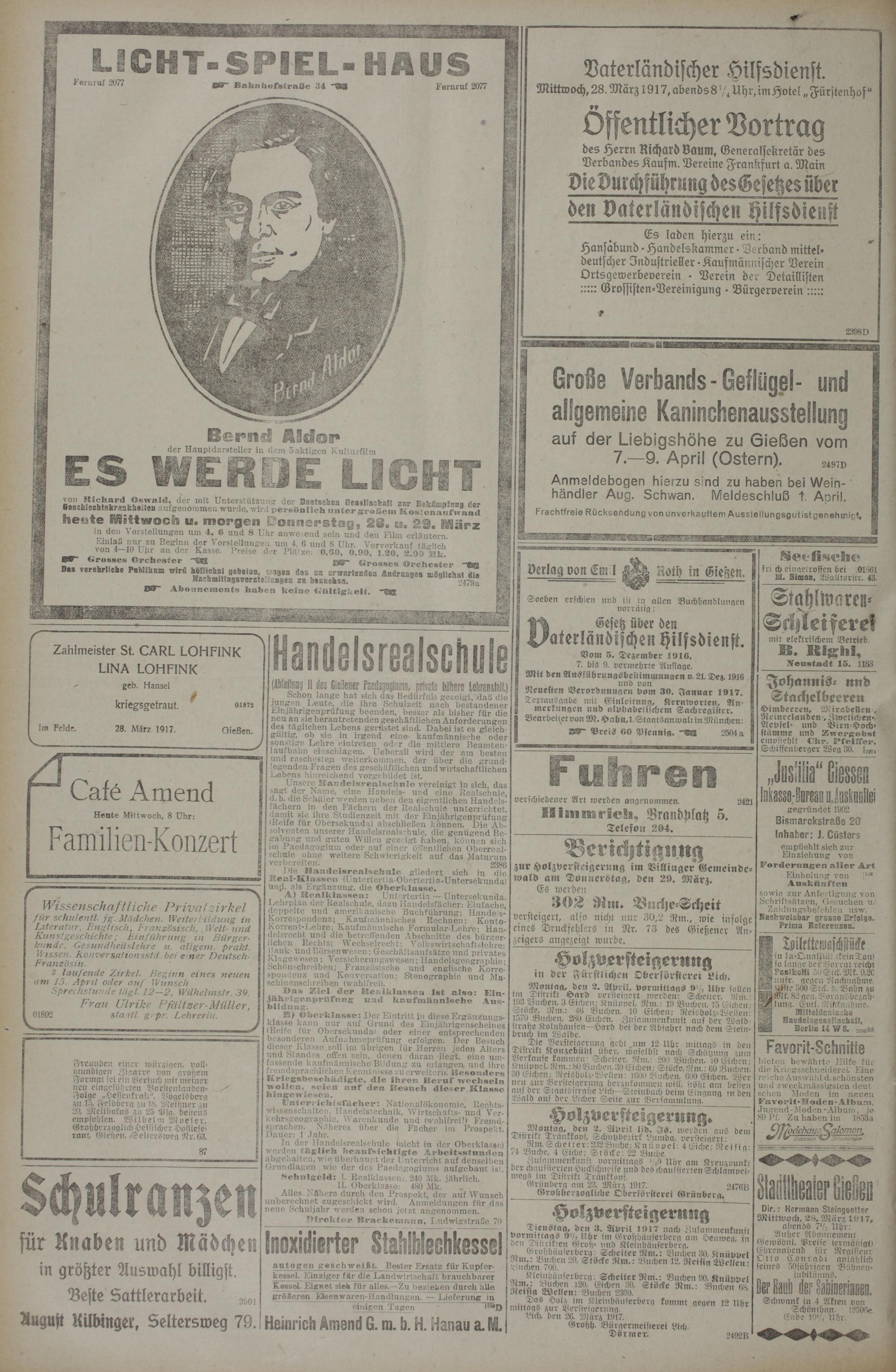 Mittwoch, 28. März 1917, abends 8 V. Uhr, im Hotel „ Fürstenhof"