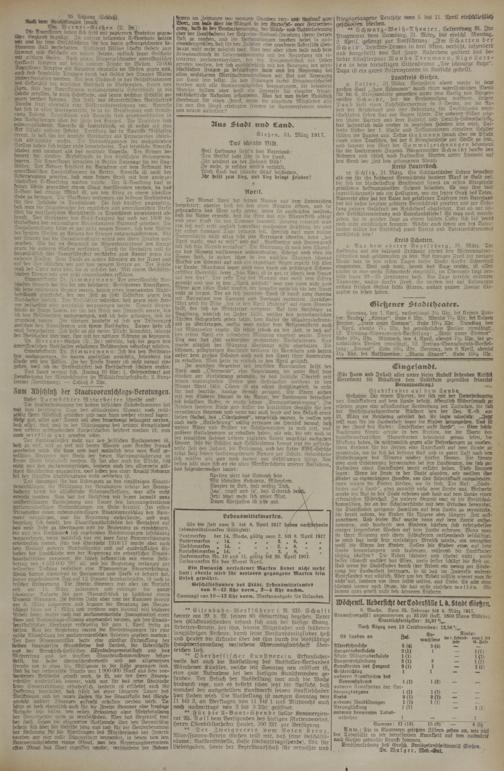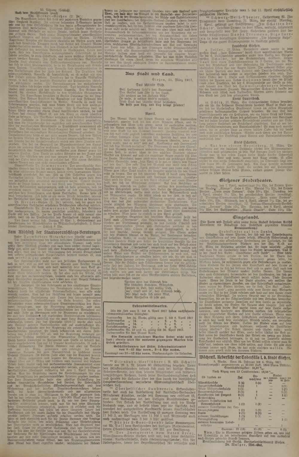 Für die Zeit vom 2. b,s 8. April 1917 haben nachstehende Lebensmittelmarken Gültigkeit: