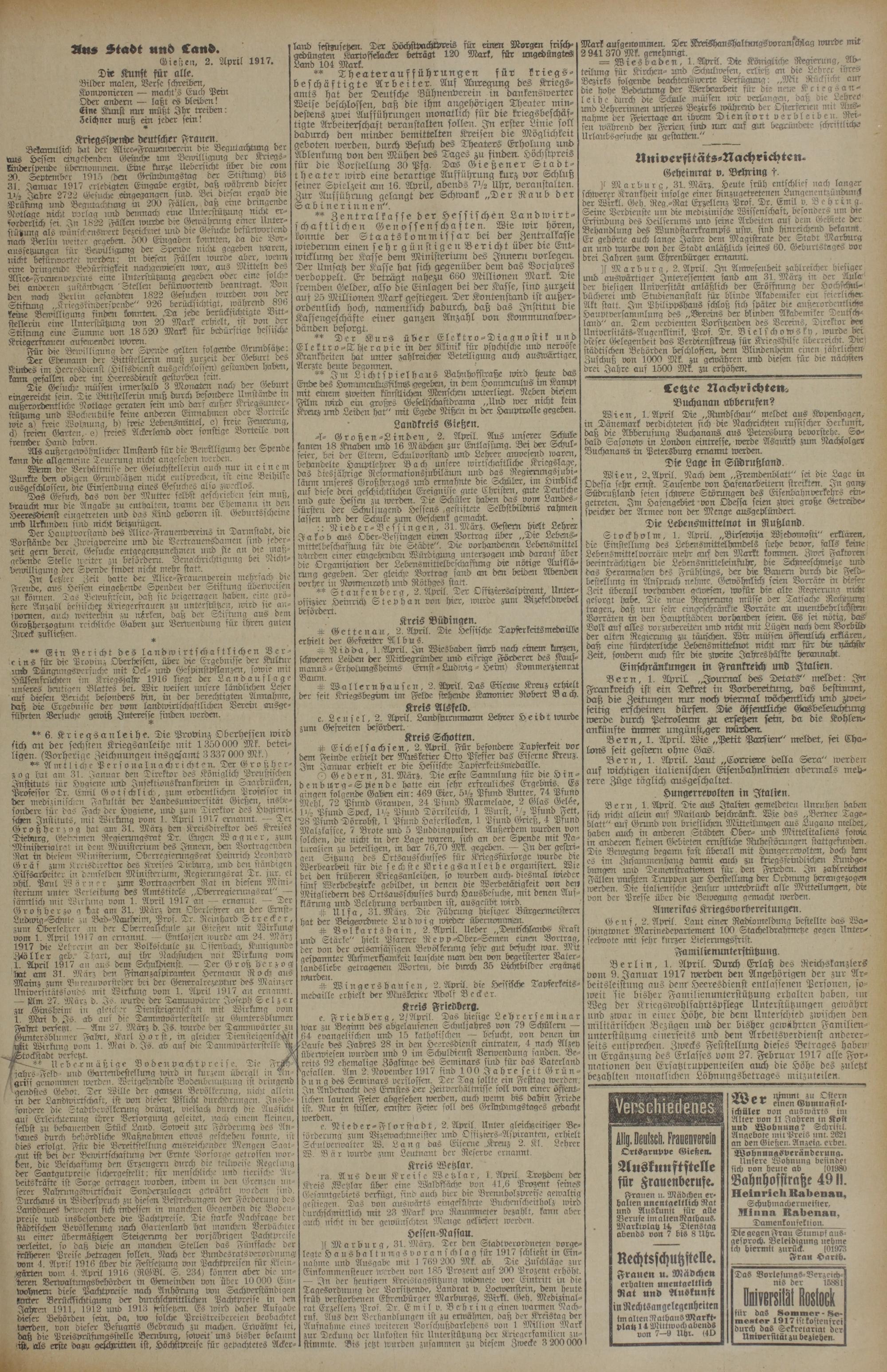 (Öie5ca, 2. April 1917.