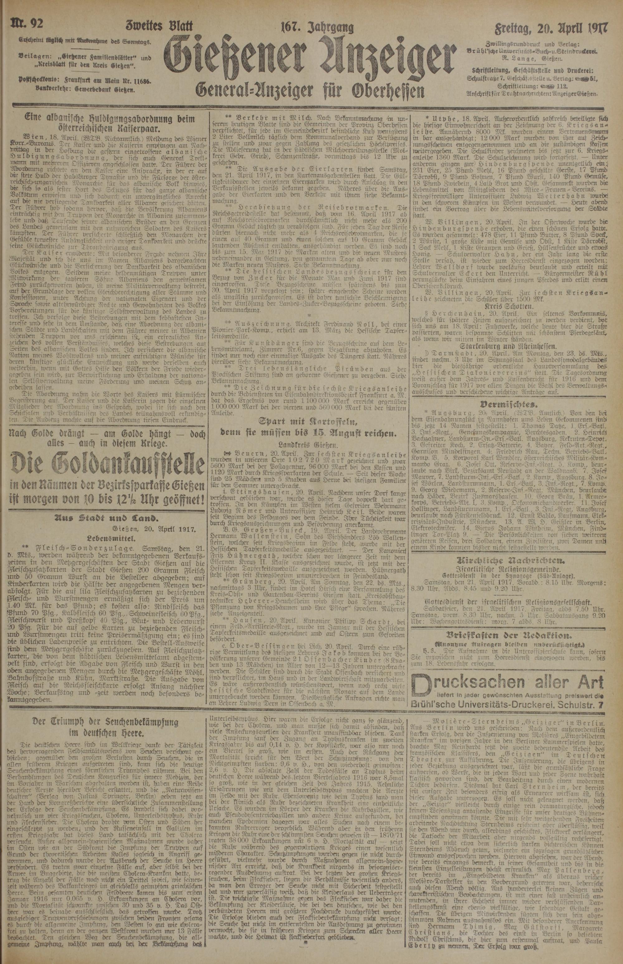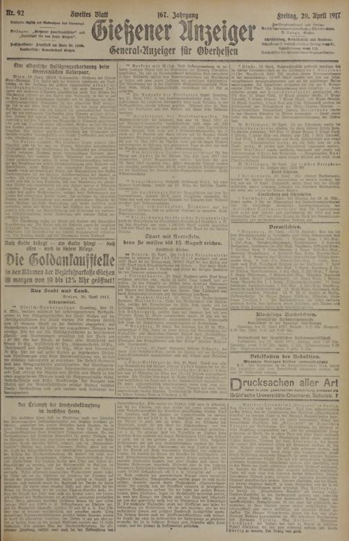 Gießen, 20. Aprtl 1917.