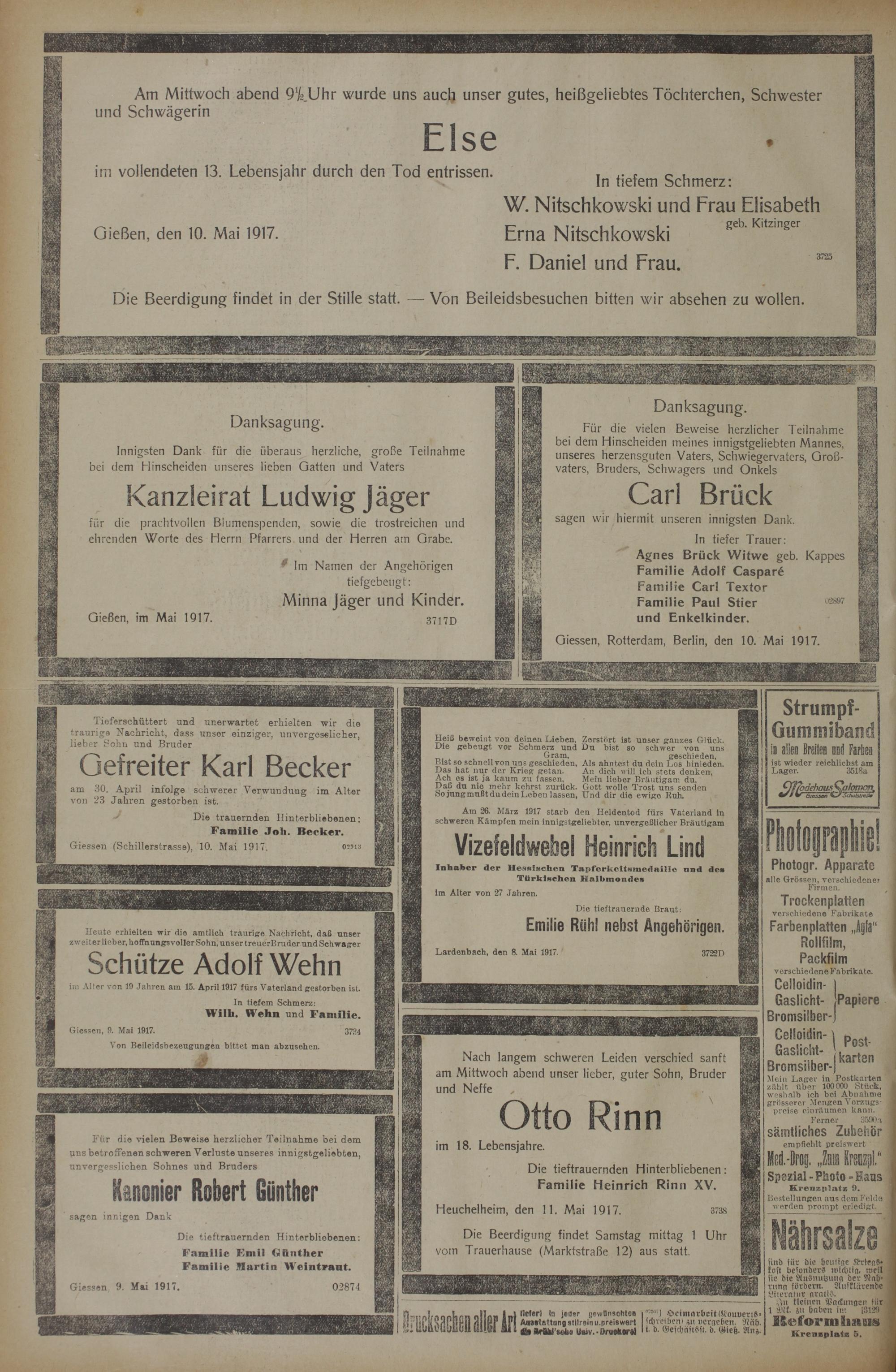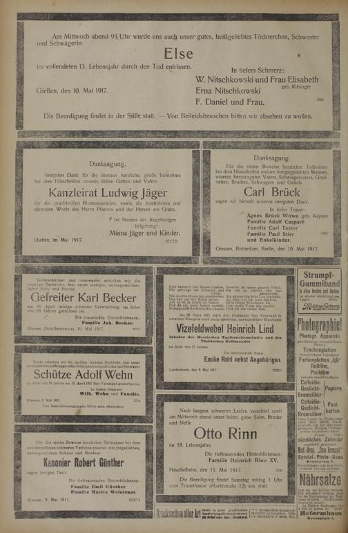 Giessen 9. Mai 1917.