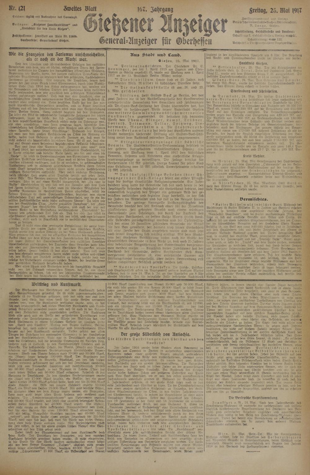 Dießen, 25. Mai 1917.