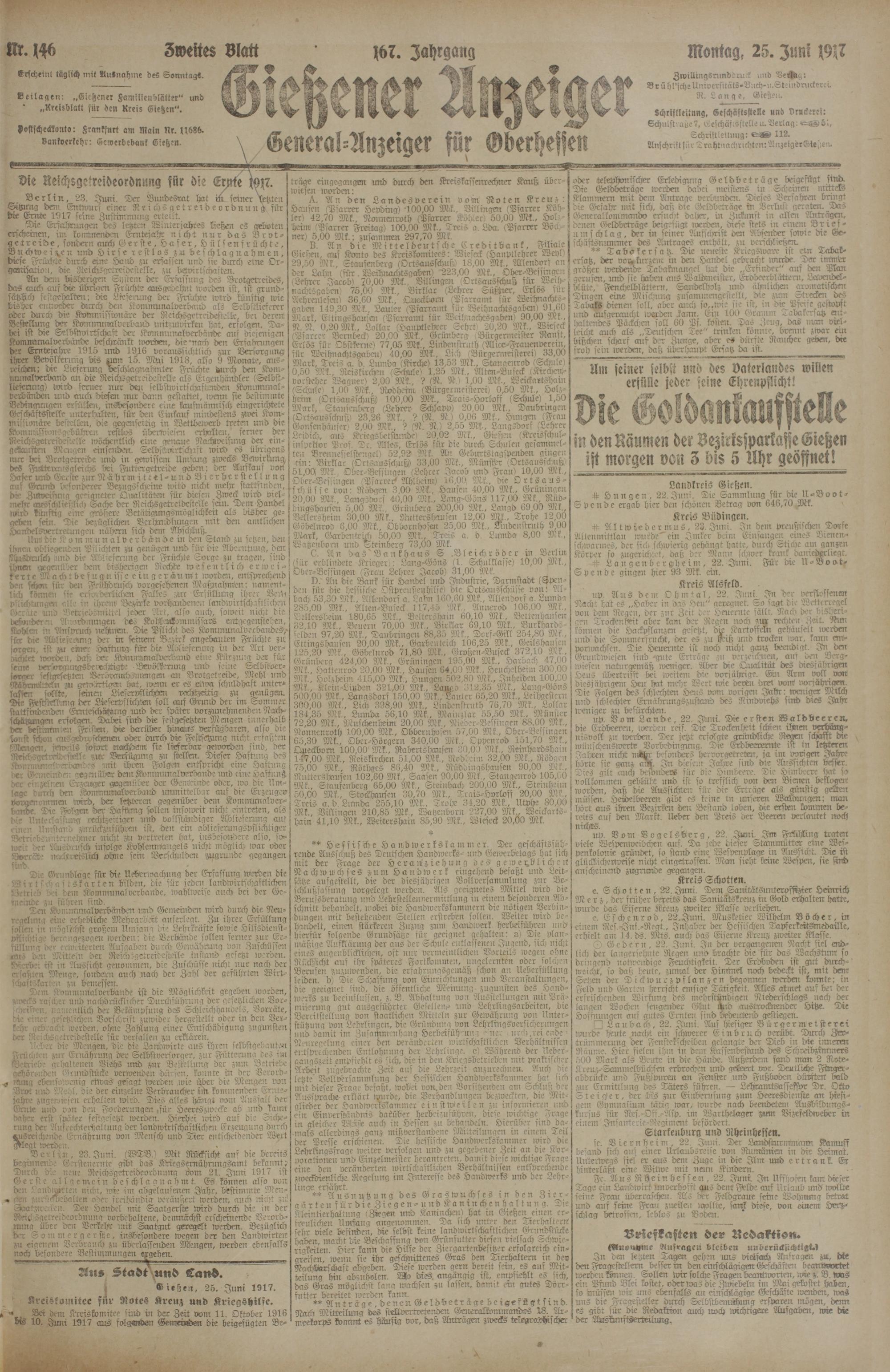 # Hungen, 22.Juni. Die Sammlung für die 11-Boot- Spende ergab hier den schwuen Bettag von 646,70 Mk.